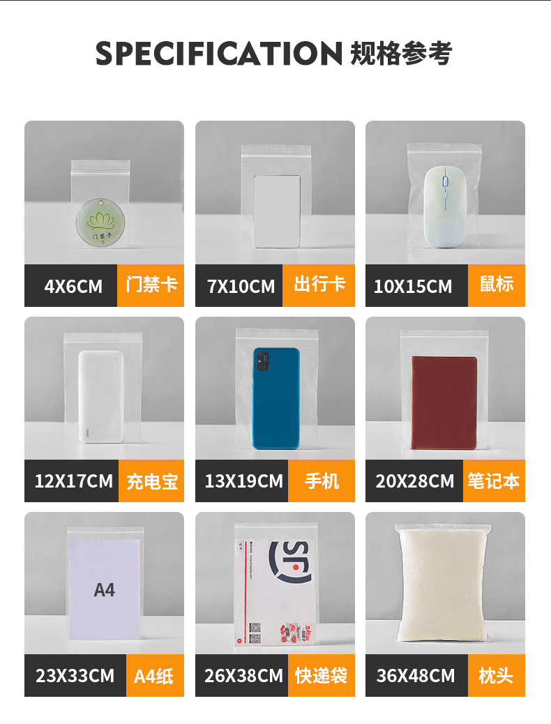 Joyería transparente PE ziplock bolsa fabricantes al por mayor grandes cantidades de larga bolsa de sellado de plástico a prueba de polvo engrosada bolsa de sellado de ropa