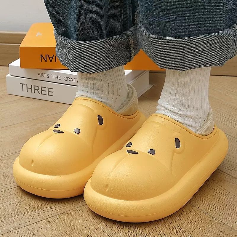 Zapatillas de algodón impermeables para mujeres invierno hogar interior cálido felpa de suela gruesa antideslizante al aire libre zapatos acolchados de algodón para hombres
