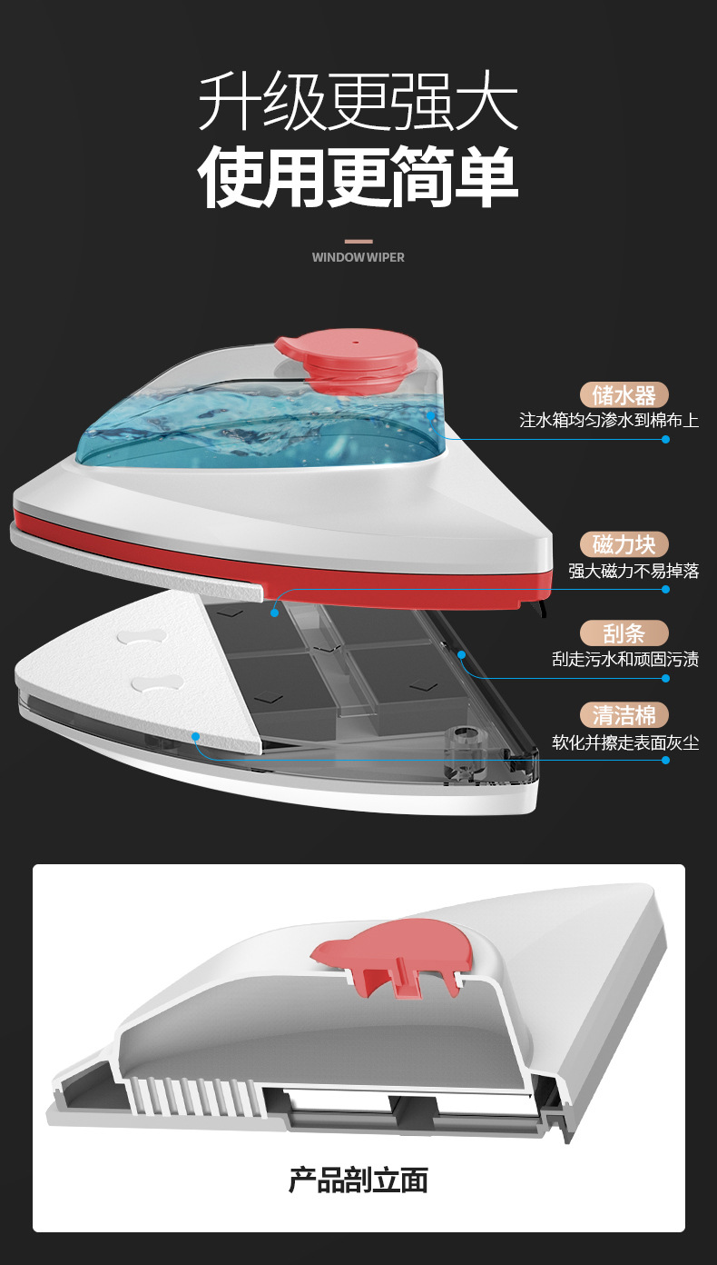 Limpiador de vidrio de inyección de agua transfronteriza de doble cara limpiador de ventana de vidrio magnético de doble cara multifuncional limpiador de vidrio hueco