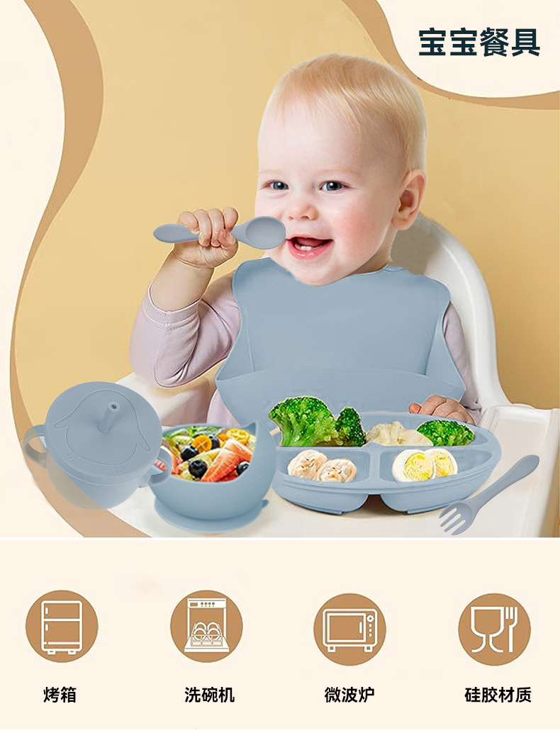 Complemento alimenticio transfronterizo para niños, plato de silicona, plato de suplemento alimenticio para bebés, plato de comida sonriente de seis piezas, vajilla para alimentación maternoinfantil al por mayor