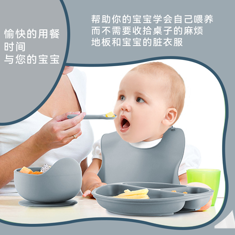 Venta caliente transfronteriza Juego de vajilla para niños Placa de comedor de silicona para bebés Tazón de alimentos para niños Juego de ocho piezas