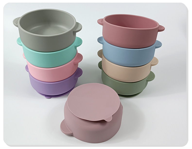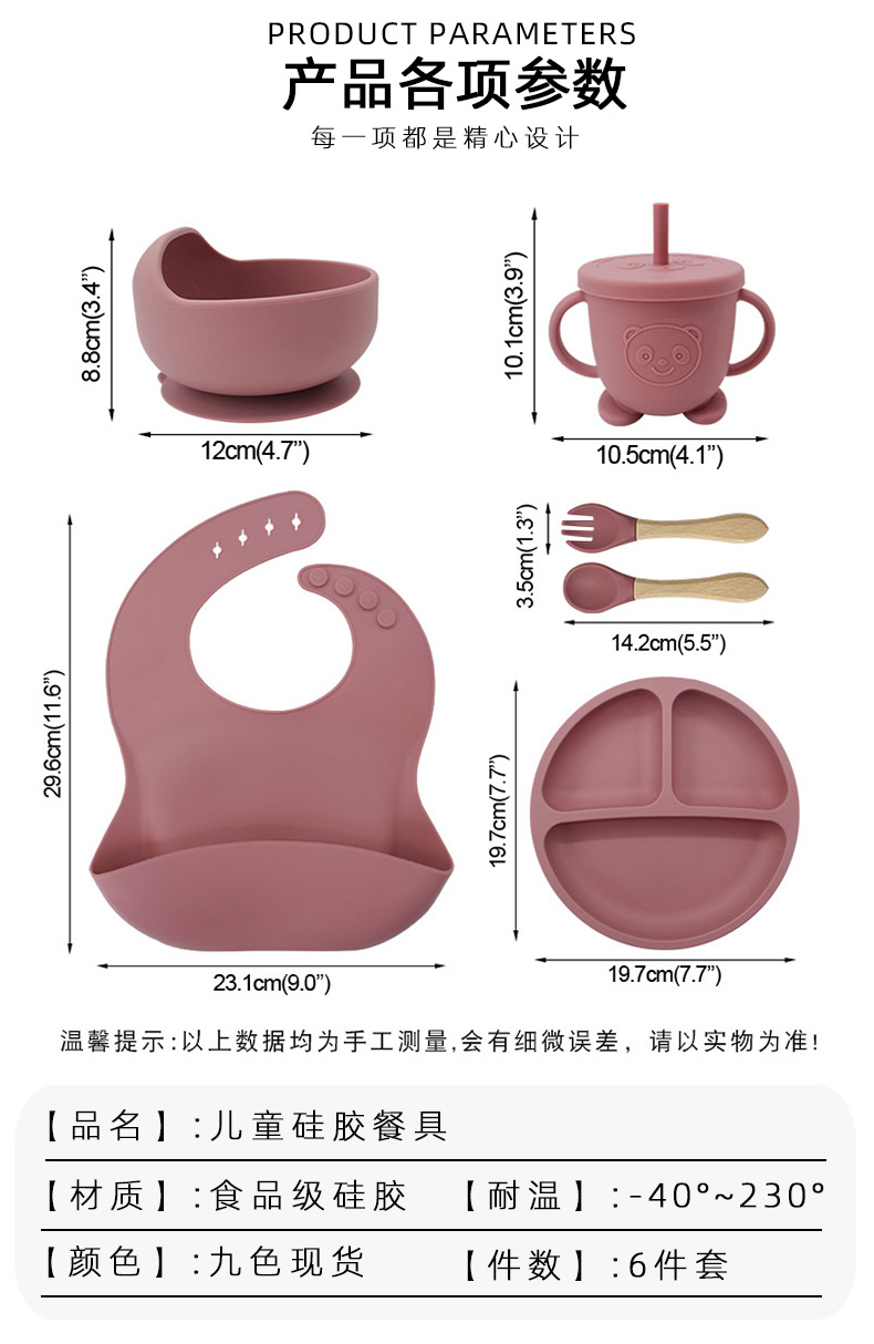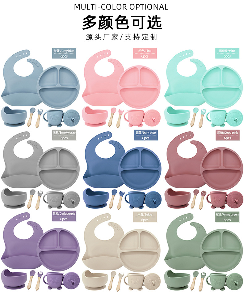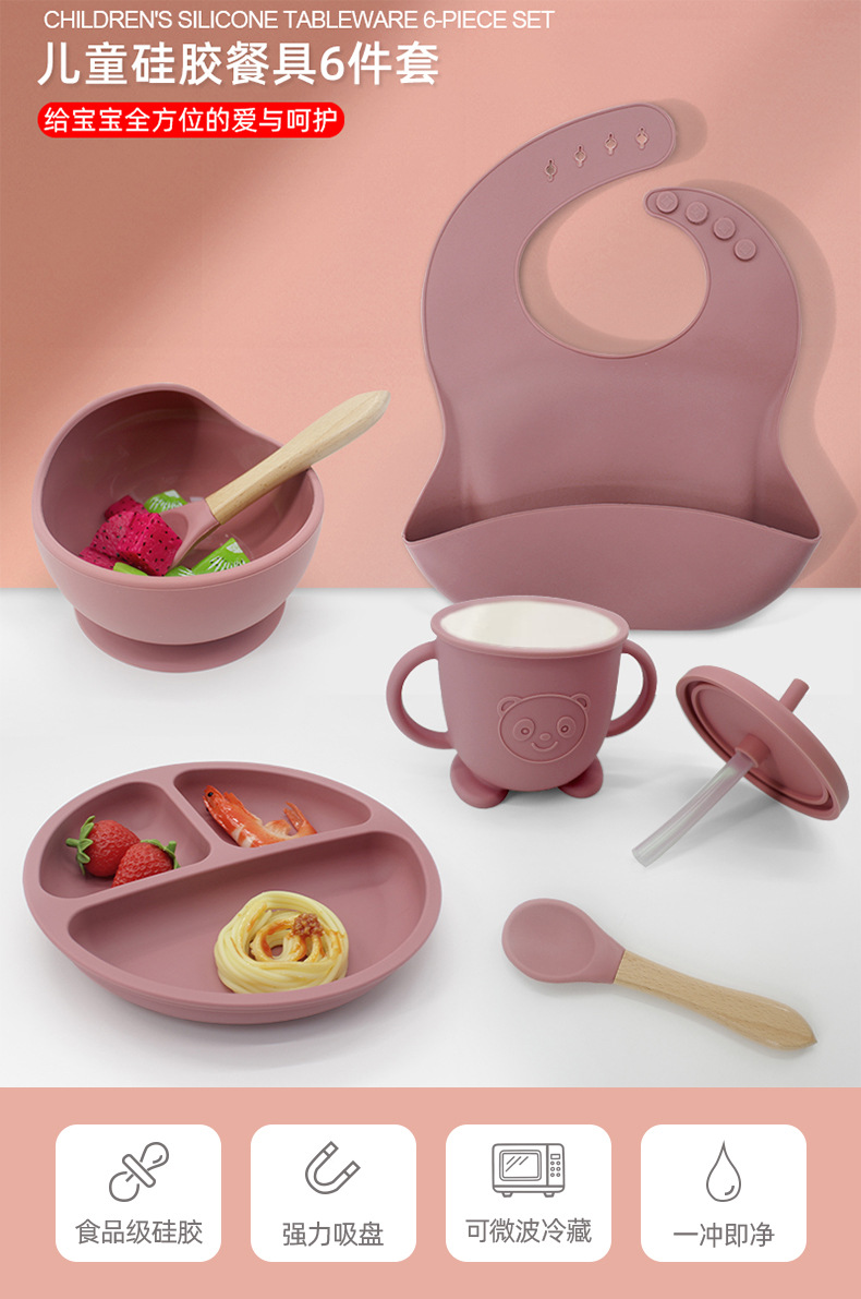 Vajilla de silicona para niños Juego de 6 piezas de silicona para bebés Tazón de alimentos complementarios separados Cuchara tenedor Taza para aprender a beber Juego de vajilla para madres y bebés