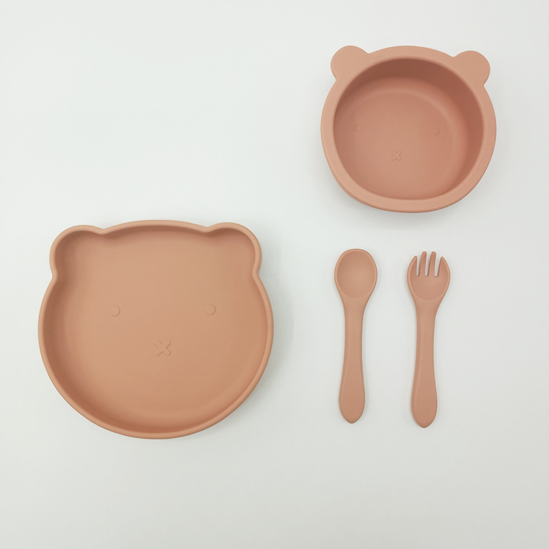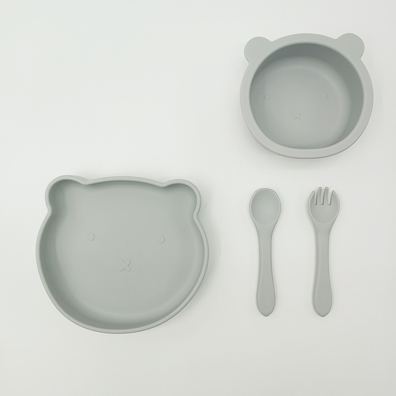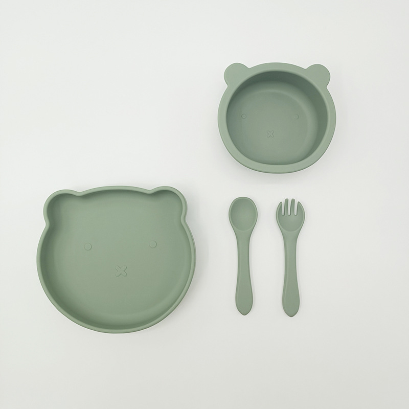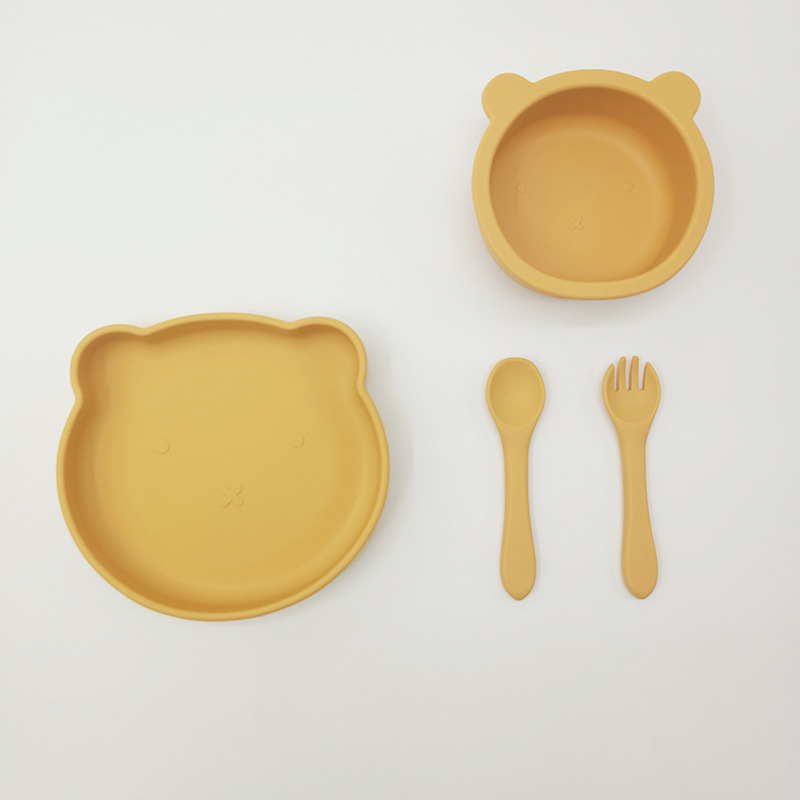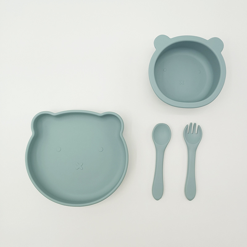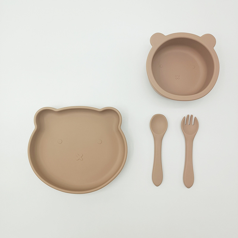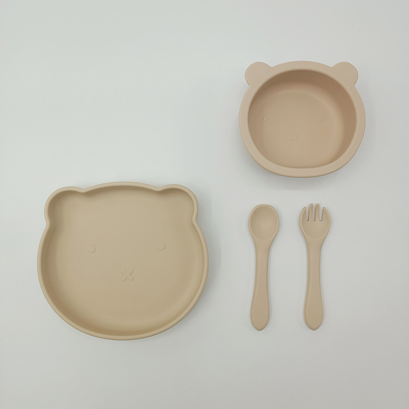 Bebé de alimentación placa cuchara Tenedor traje grado alimenticio silicona Integrado placa niños dibujos animados oso vajilla materna y infantil