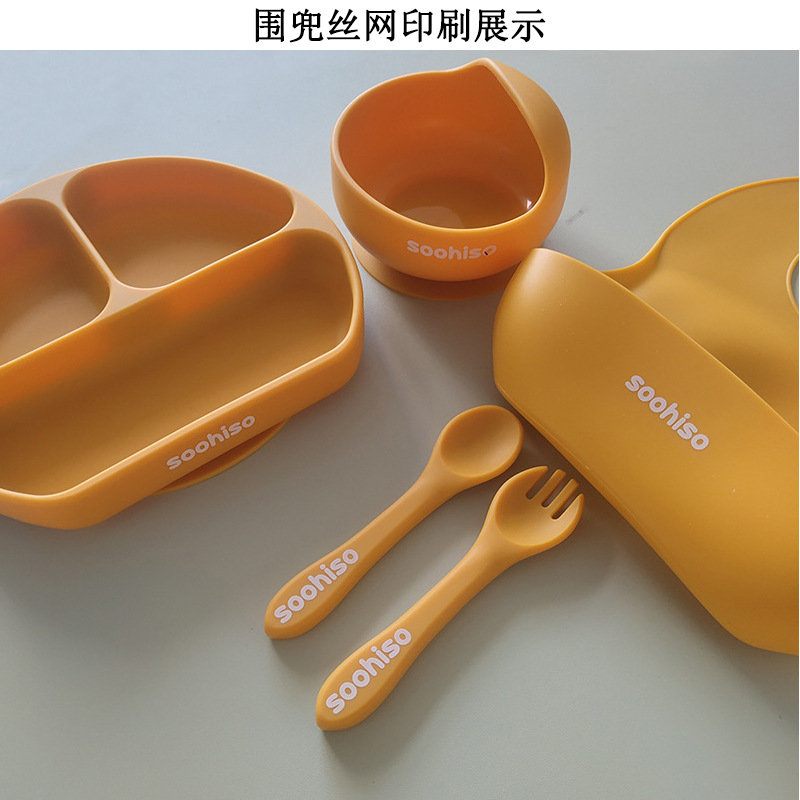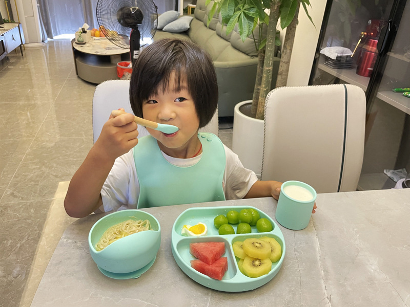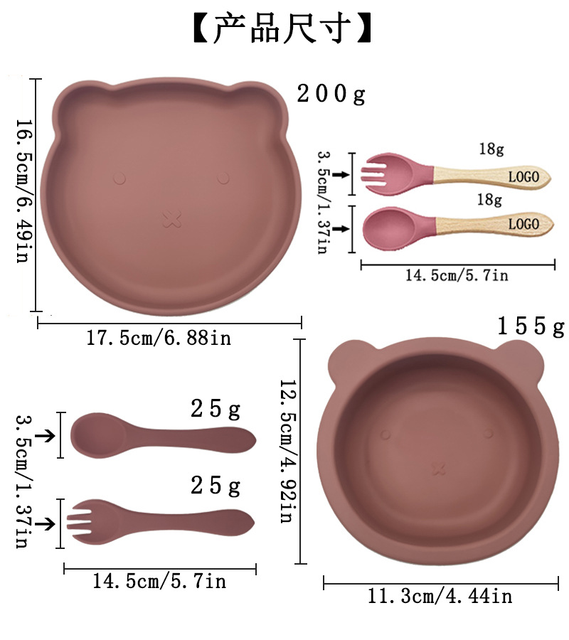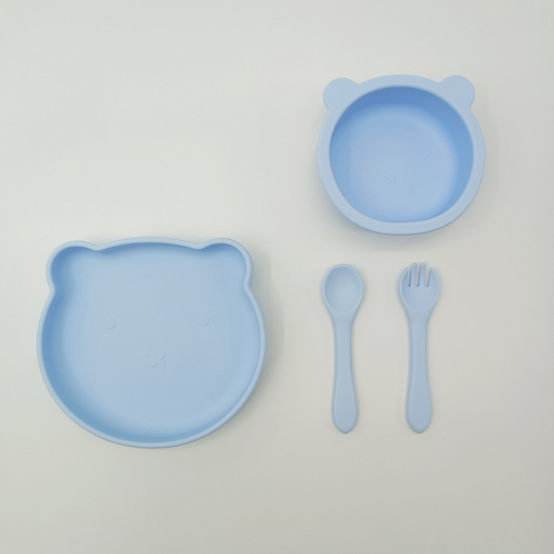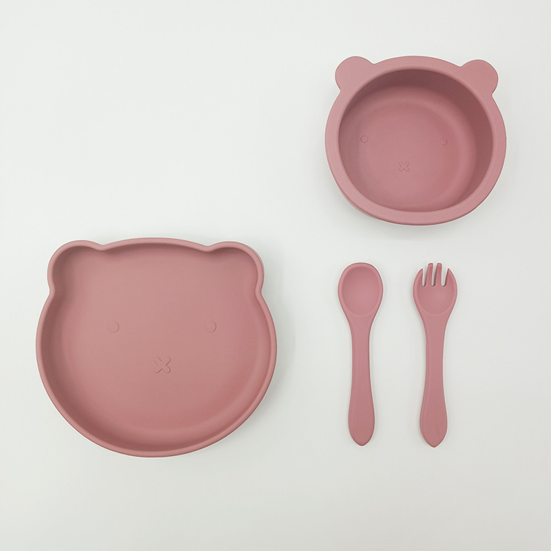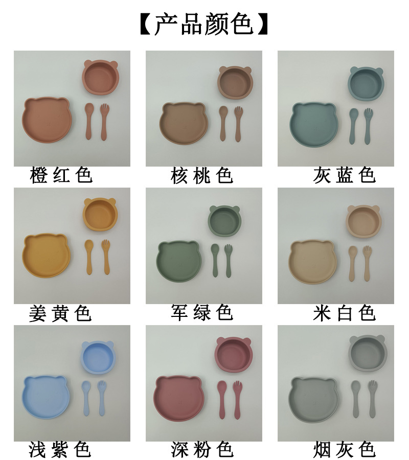 Bebé de alimentación placa cuchara Tenedor traje grado alimenticio silicona Integrado placa niños dibujos animados oso vajilla materna y infantil