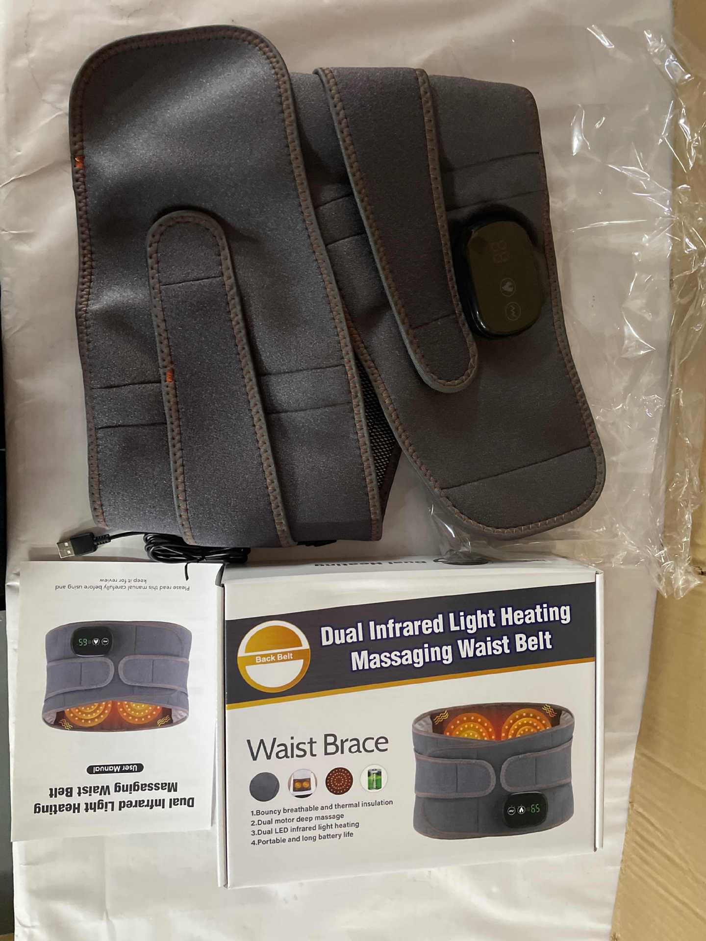 Modelo privado calefacción eléctrica cinturón de masaje carga USB luz roja calentamiento abdomen cintura masajeador cinturón de calefacción