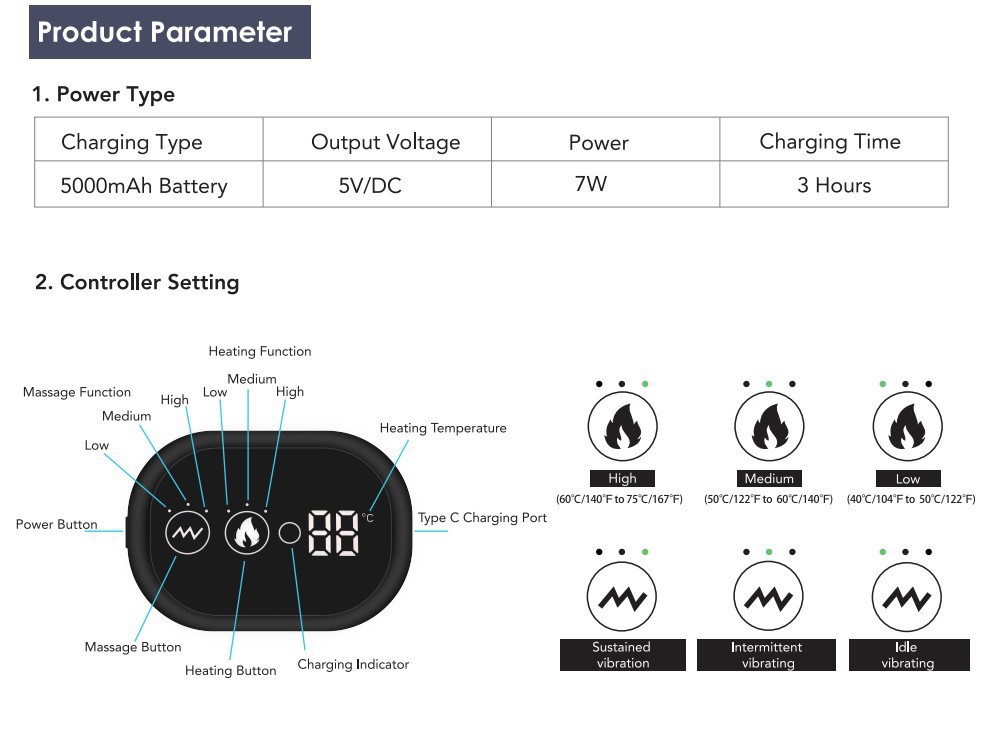 | Puntos de venta del producto | Carga USB, 3 niveles de ajuste de temperatura. |