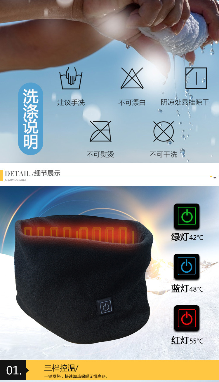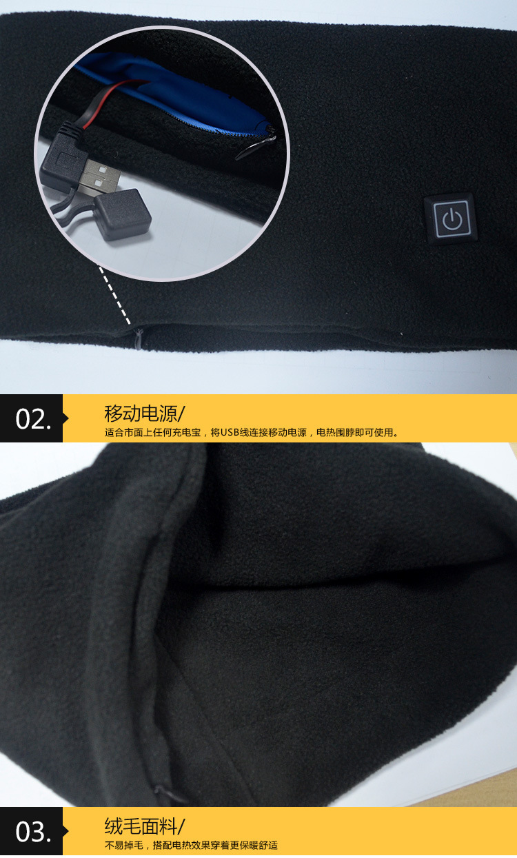 Venta al por mayor de tres engranajes USB calefacción eléctrica bufanda collar hombres y mujeres de calefacción inteligente cuello polar bufanda caliente a prueba de frío