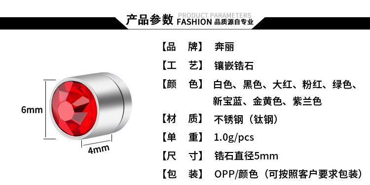 Europa y América de la moda de acero de titanio no perforado imán clip de la oreja de Acero Inoxidable Super Flash 5mm ZIRCON espárragos ventas directas de la fábrica