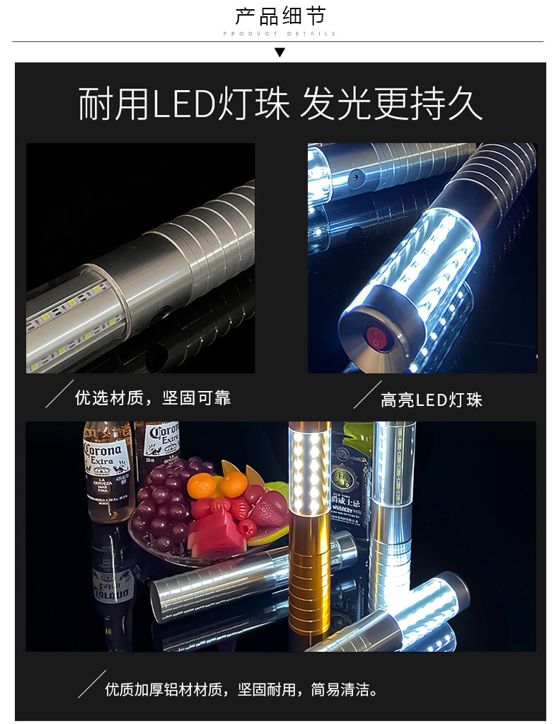 Barra luminosa LED recargable transfronteriza para bares y KTV, barra luminosa portátil en caja para licor, vino y champán.
