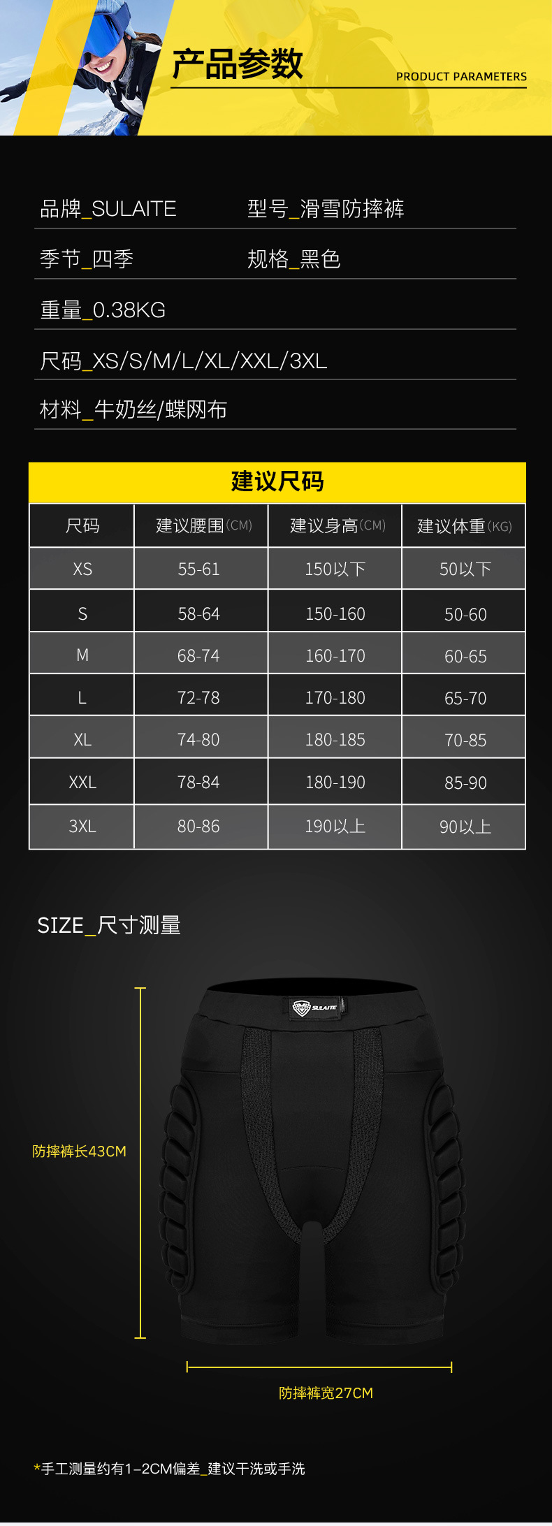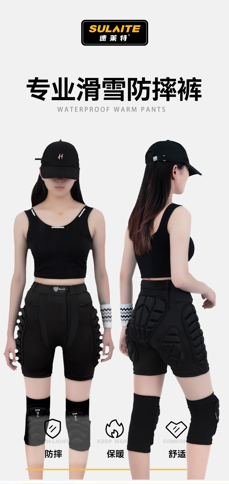 SULAITE patinaje de esquí de cadera pantalones de protección patineta patinaje anti-caída al aire libre montar deportes cadera protección
