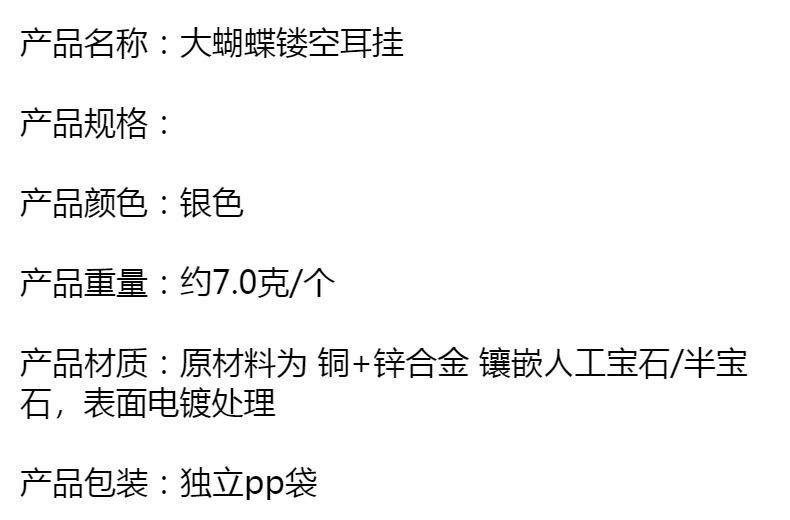 Tiktok mismo estilo mariposa percha de oreja diseño de nicho femenino versátil súper Hada colgador de oreja elfo incrustado en diamante sin clip de hueso de oreja perforado