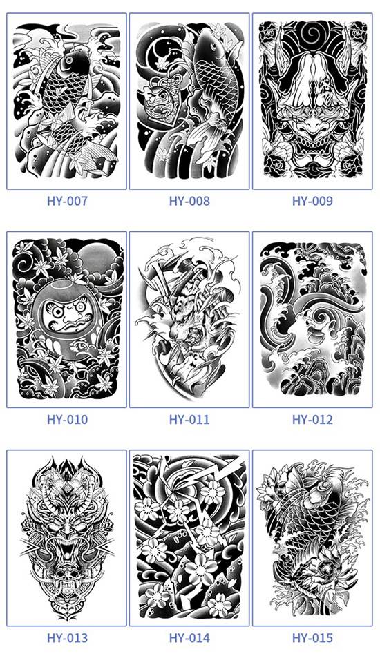 Jugo de tatuaje a base de hierbas pegatinas semi-permanente lavable impermeable no reflectante japonés antiguo tradicional flor de cerezo brazo koi peces para hombres