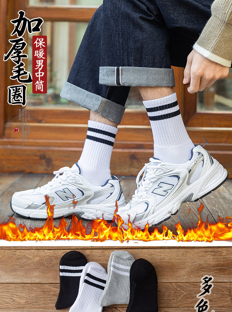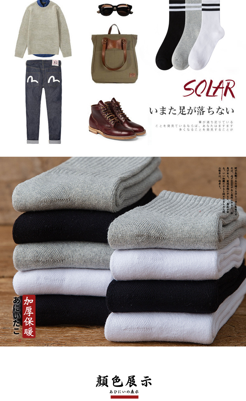 Calcetines de los hombres medias de la toalla de la mitad de la pantorrilla Otoño e Invierno de algodón forrado de lana gruesa de lana caliente de los hombres largos de invierno