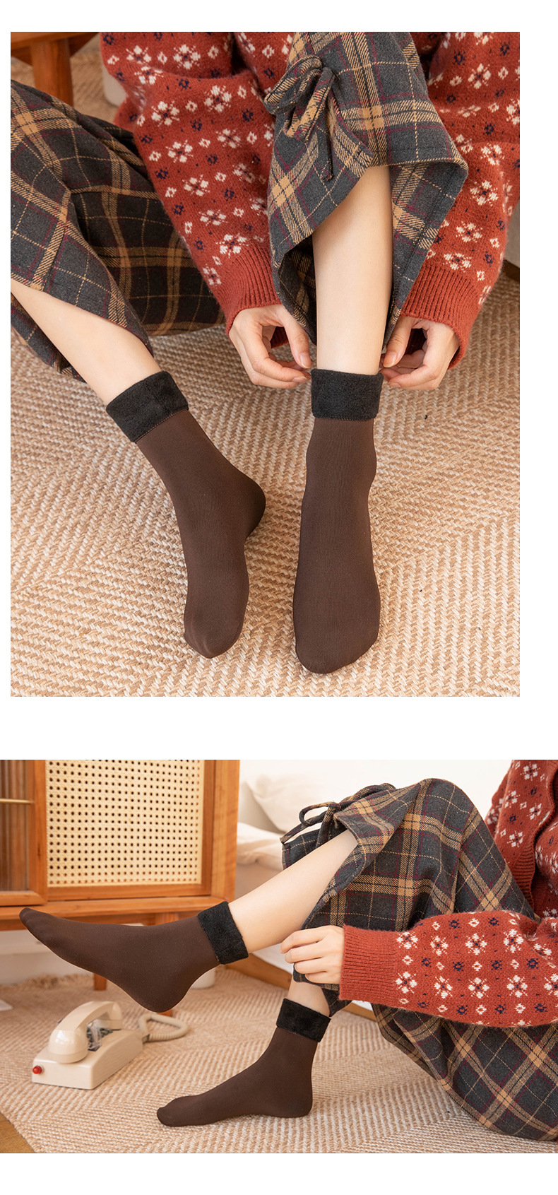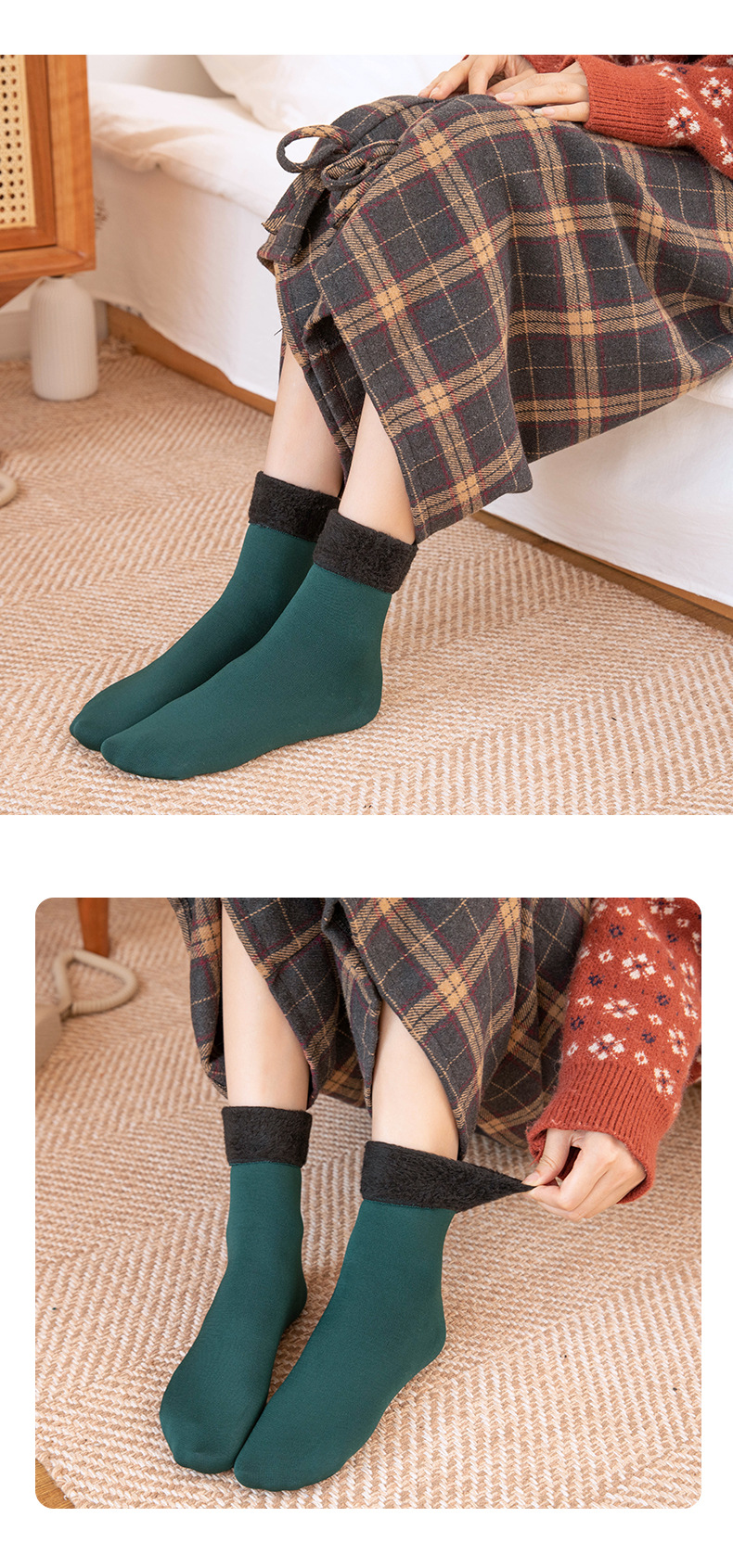 Calcetines de media pantorrilla para mujer Calcetines de nieve engrosados forrados de lana de otoño e invierno calcetines de confinamiento cálidos casuales hombres y mujeres calcetines de piso de color sólido