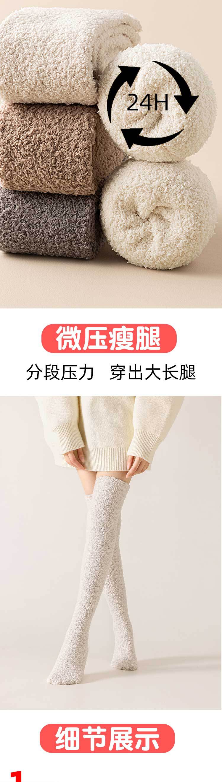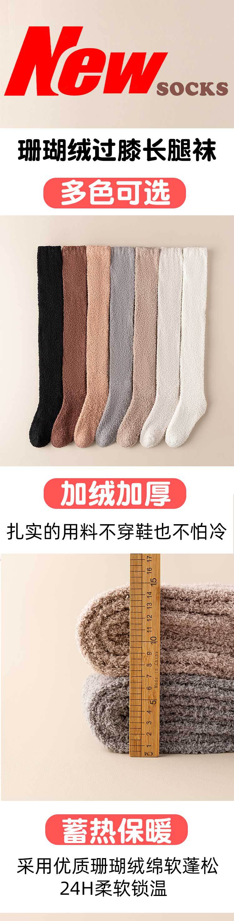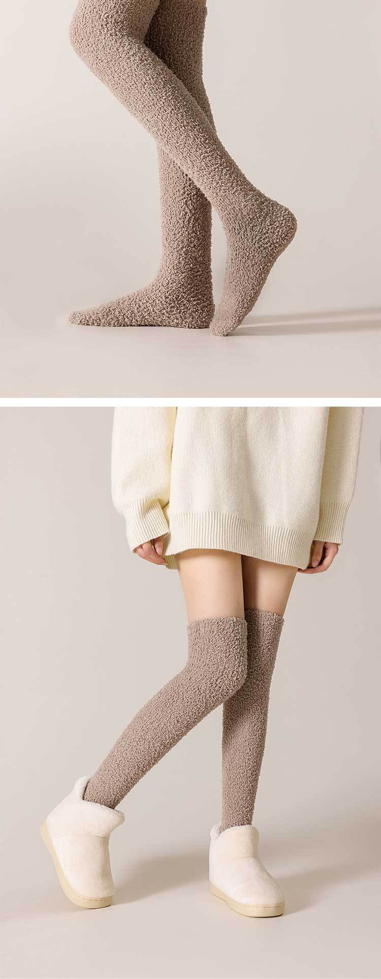 Calcetines de lana de coral sobre la rodilla medias sin pelusa calcetines de piso de sueño gruesos forrados de lana calcetines de pierna delgada medias calientes