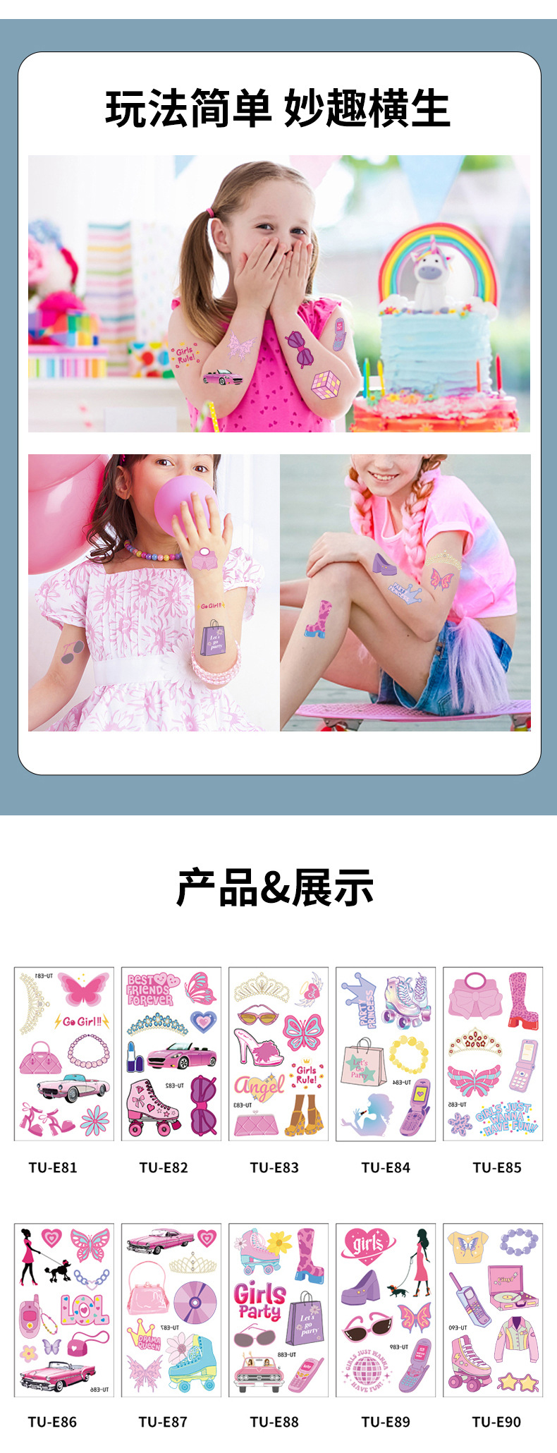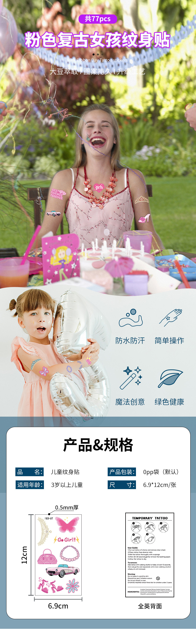 Suministro transfronterizo nueva chica retro tatuaje fiesta de cumpleaños tatuaje pegatinas niños Rosa lindo cara pegatinas temporal