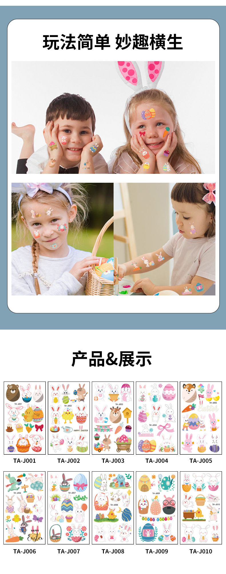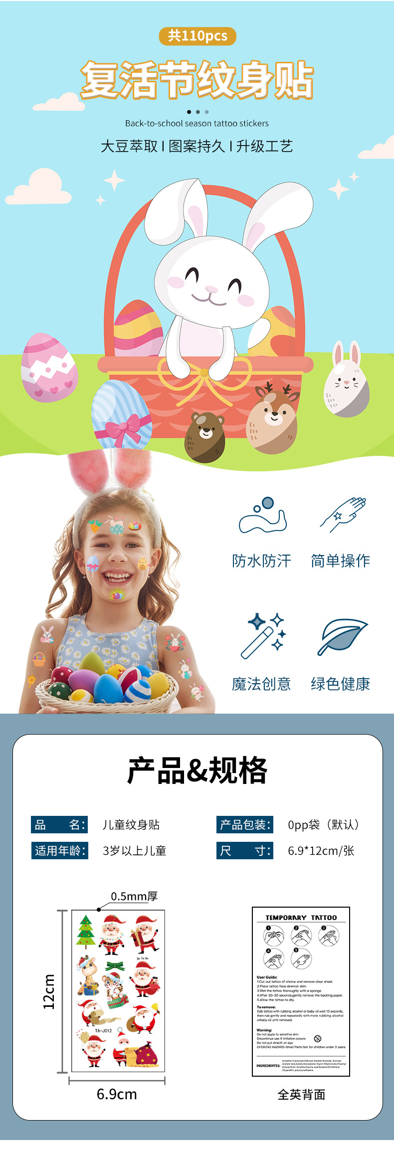 Nuevo tatuaje de Pascua pegatinas conejo huevo pollo diversión fiesta Día de Pascua desechables pegatinas temporales
