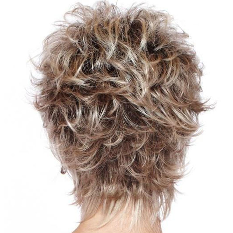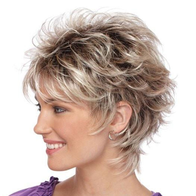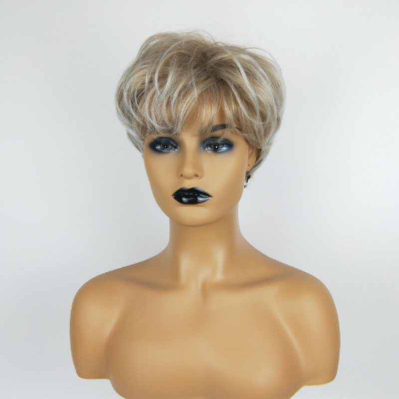 AliExpress peluca europea y americana del comercio exterior de las mujeres de pelo corto de color mezclado Peluca de fibra química Temu suministro al por mayor transfronterizo entrega de una sola pieza