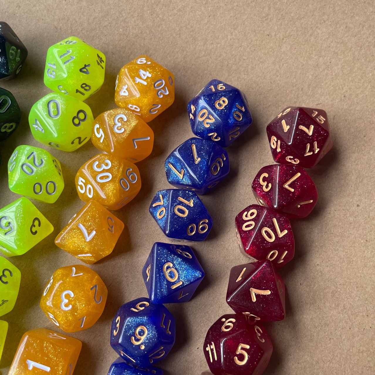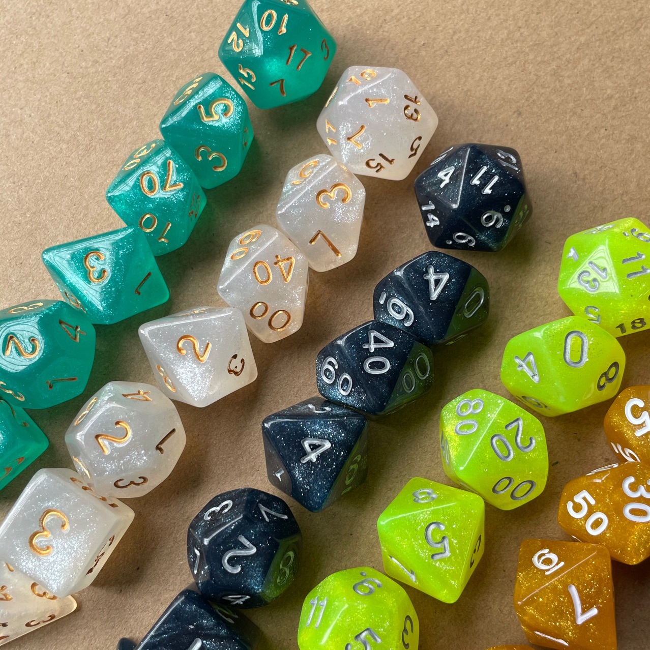 Juego de mesa de 7 piezas de dados de dos colores, juego de mesa de varios caras con brillo, cielo estrellado, juego de cartas, combinación de dados transfronterizos