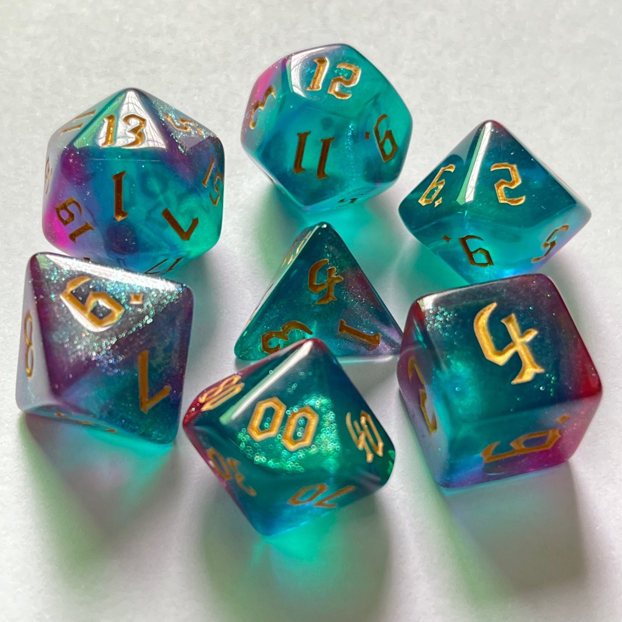7 juegos de traje de camaleón de dos colores nueva fuente dados digitales de múltiples lados juego de tablero de juego de dragón y mazmorra fuera