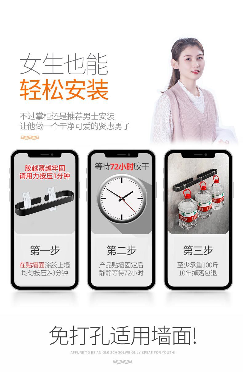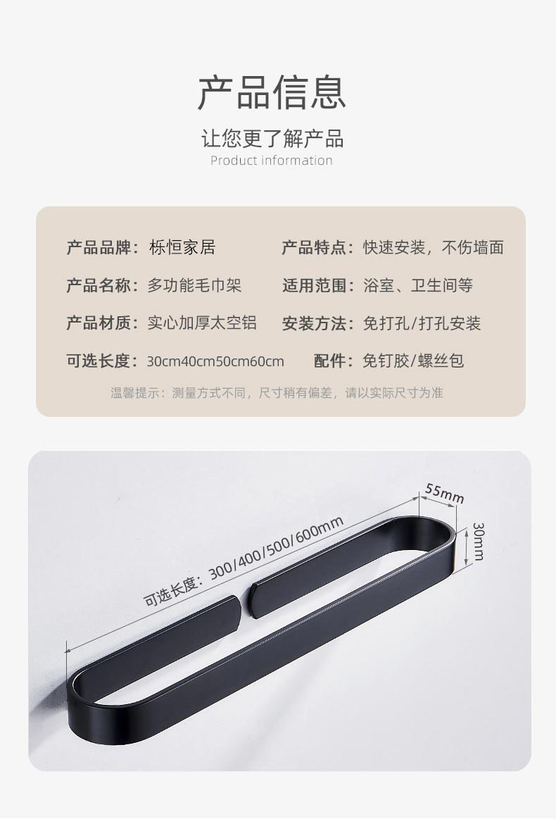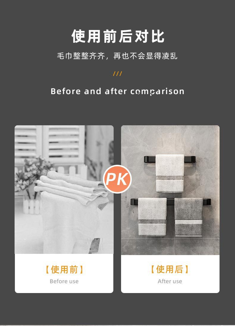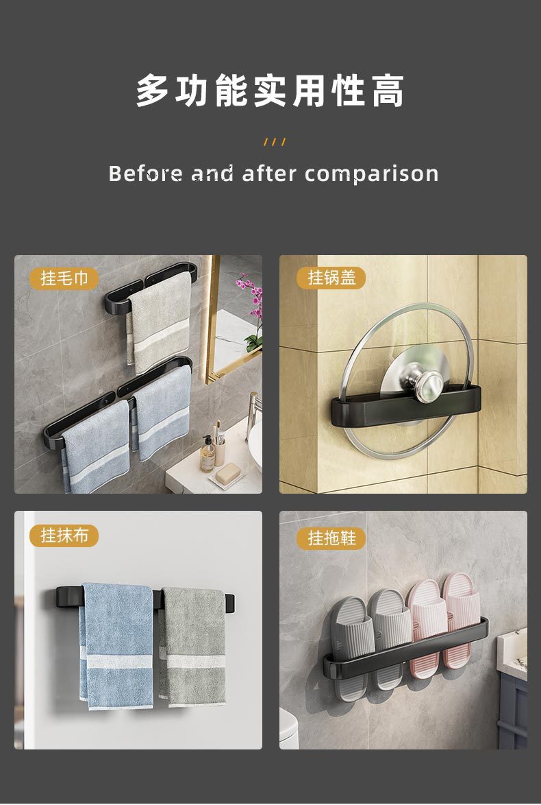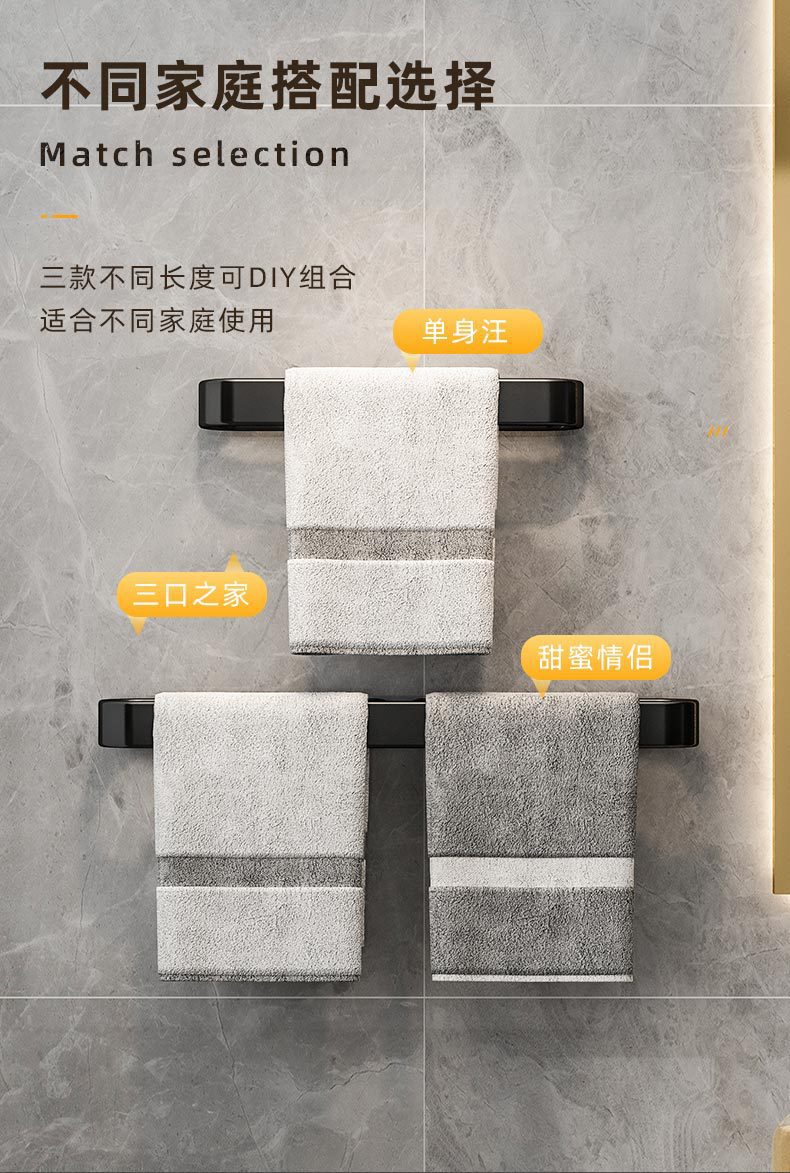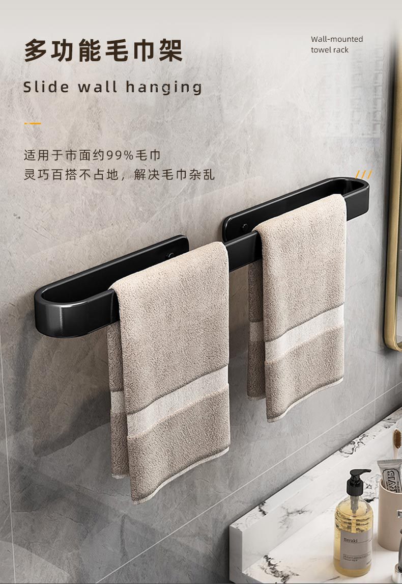 Espacio sin perforaciones zapatillas de toalla de aluminio drenaje Toalla de baño barra colgante de pared estante de toalla de baño