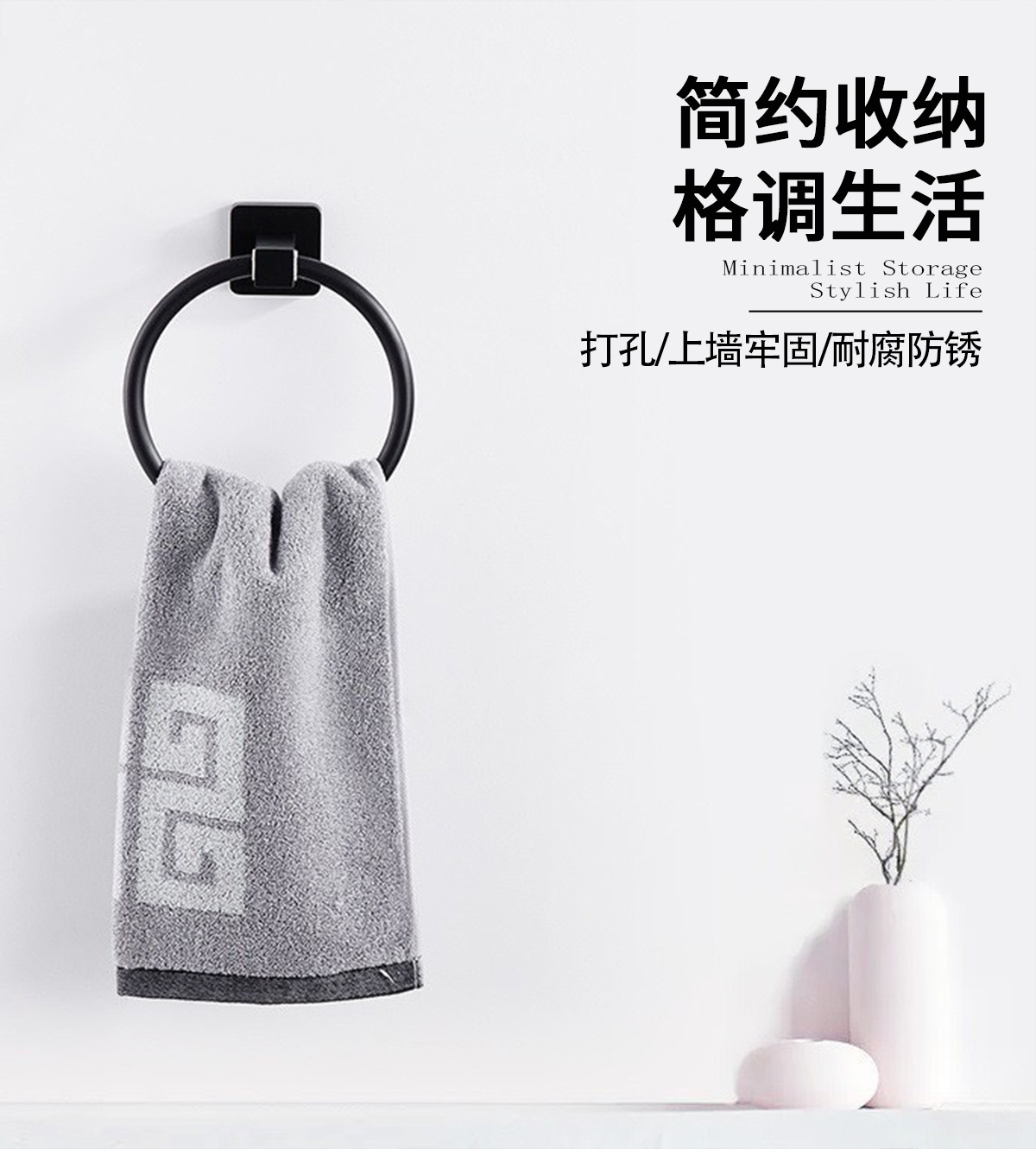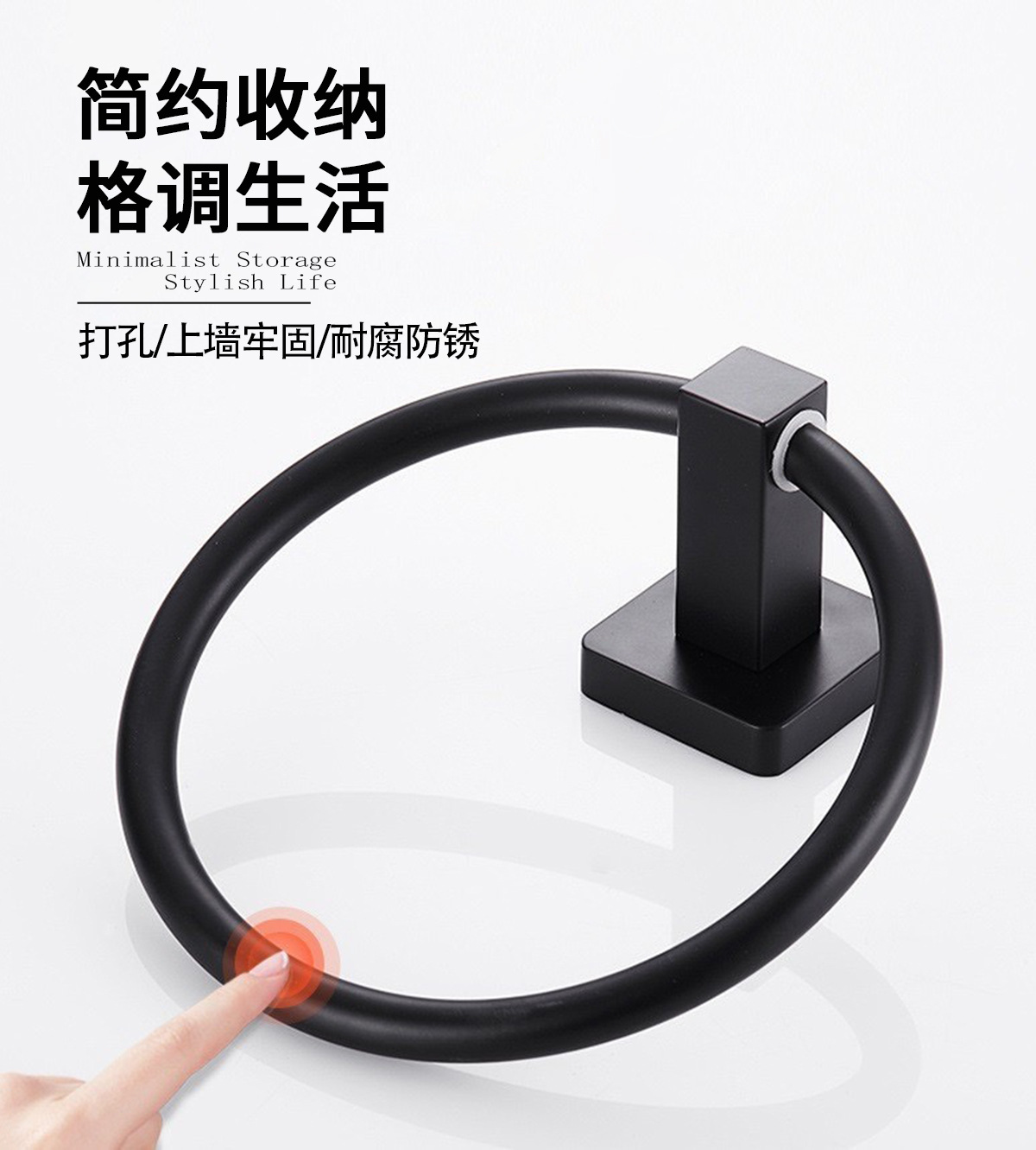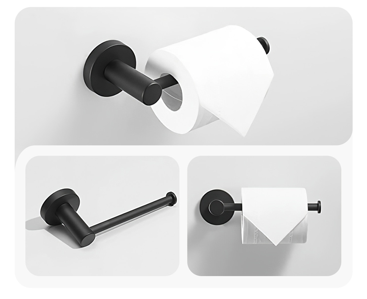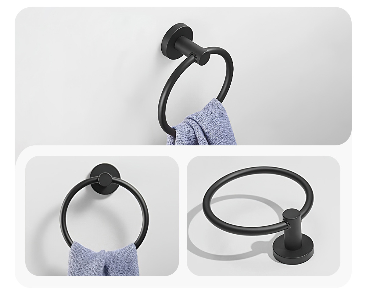 Directo de fábrica de acero inoxidable anillo de toalla de cocina y baño de hardware de papel higiénico estante de tejido negro Americano transfronterizo