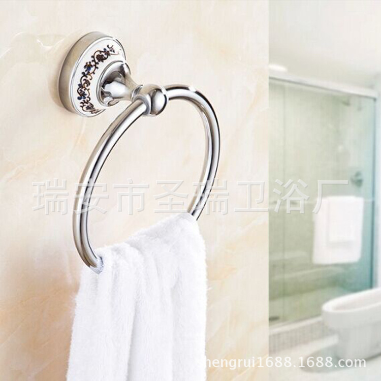 Shengruijia baño hardware colgante azul y blanco porcelana toalla anillo cerámica toalla rack Acero inoxidable toalla anillo transfronterizo