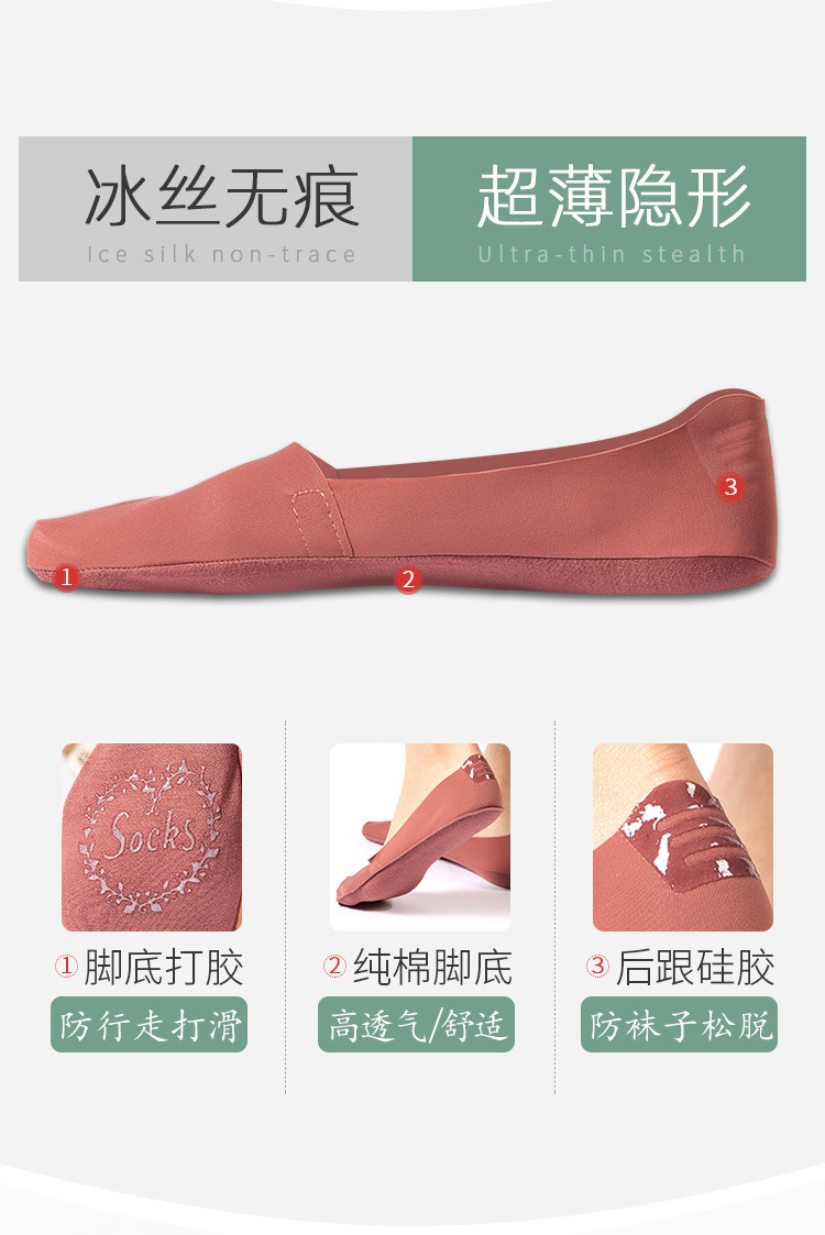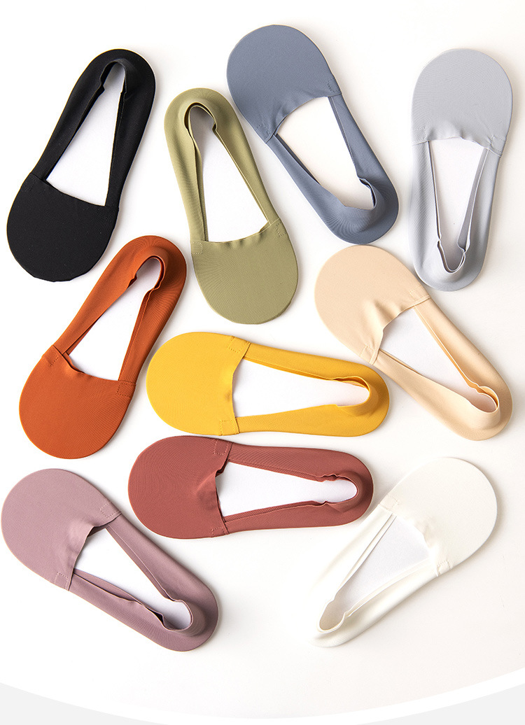 La primavera y el verano de las nuevas mujeres calcetines de seda de hielo fresco invisibles calcetines de silicona antideslizante barco