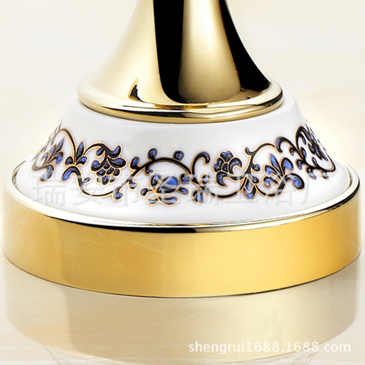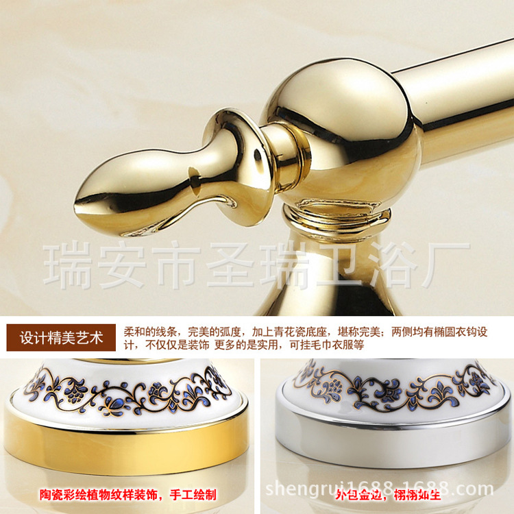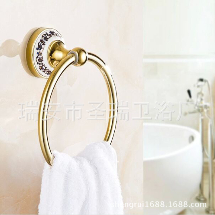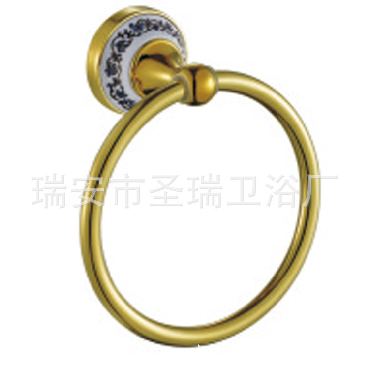 Shengruijia baño hardware colgante chapado en oro azul y blanco porcelana toallero anillo de acero inoxidable anillo de toalla de cerámica