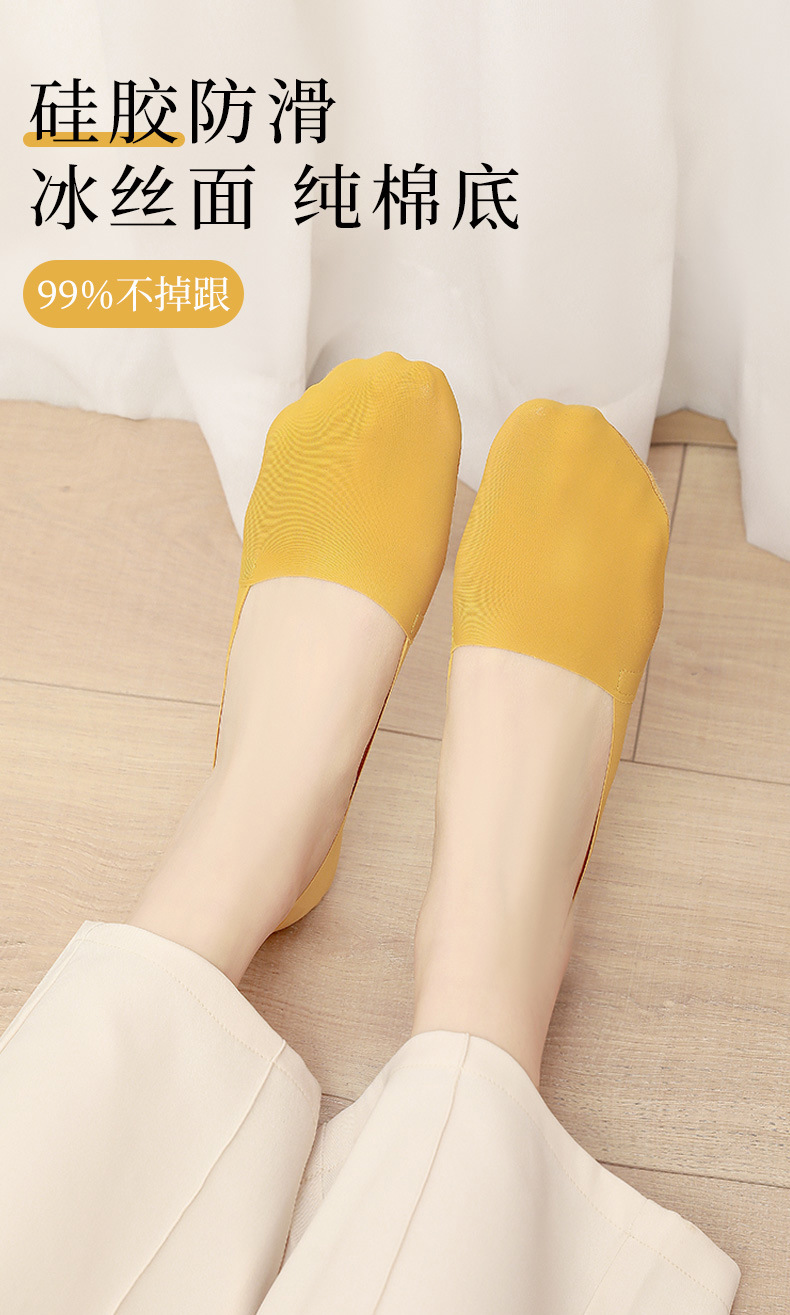 Calcetines invisibles transpirables sin costuras de seda de hielo de nylon absorbente de sudor Calcetines Bajos Calcetines de primavera y verano de algodón puro