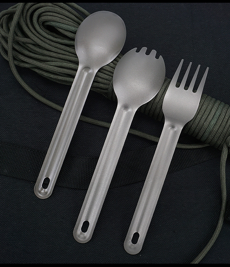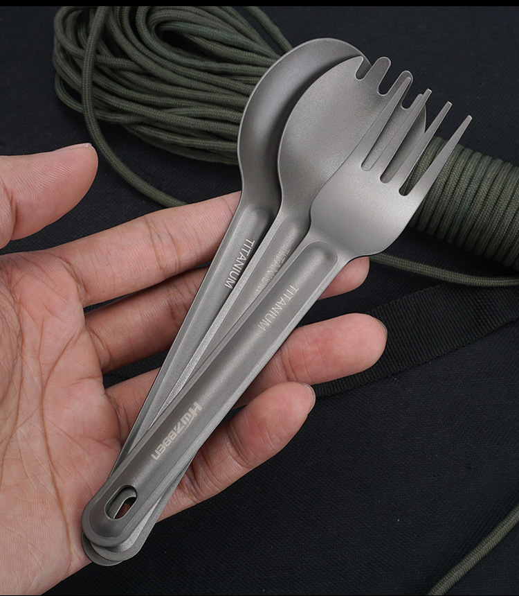 Nuevo traje de vajilla de camping al aire libre vajilla de titanio cuchara de titanio tenedor fabricante EDC en stock entrega de 1 unidades