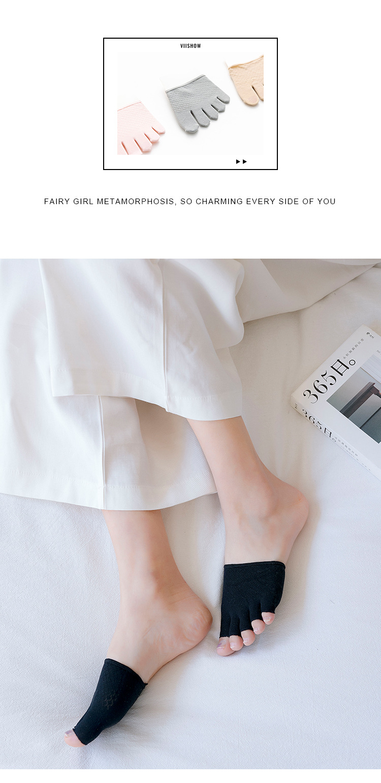 Calcetines de mujer de media palma zapatos de tacón alto calcetines de Palma delanteros medias Calcetines invisibles de cinco dedos sandalias de verano de las mujeres de corte bajo calcetines del dedo del pie