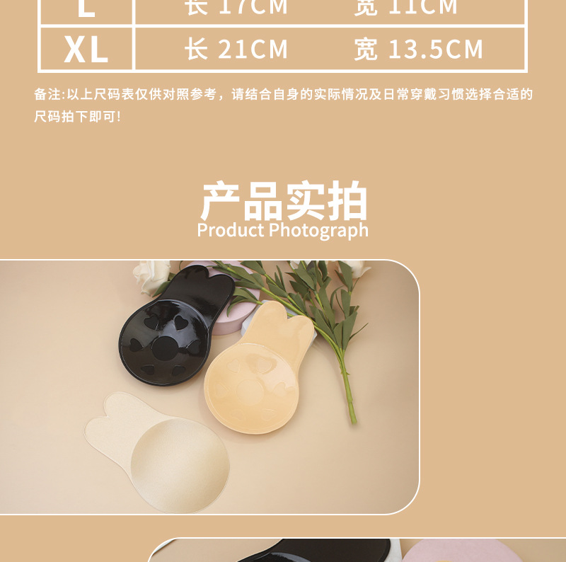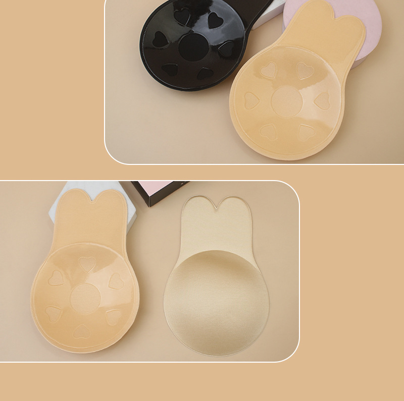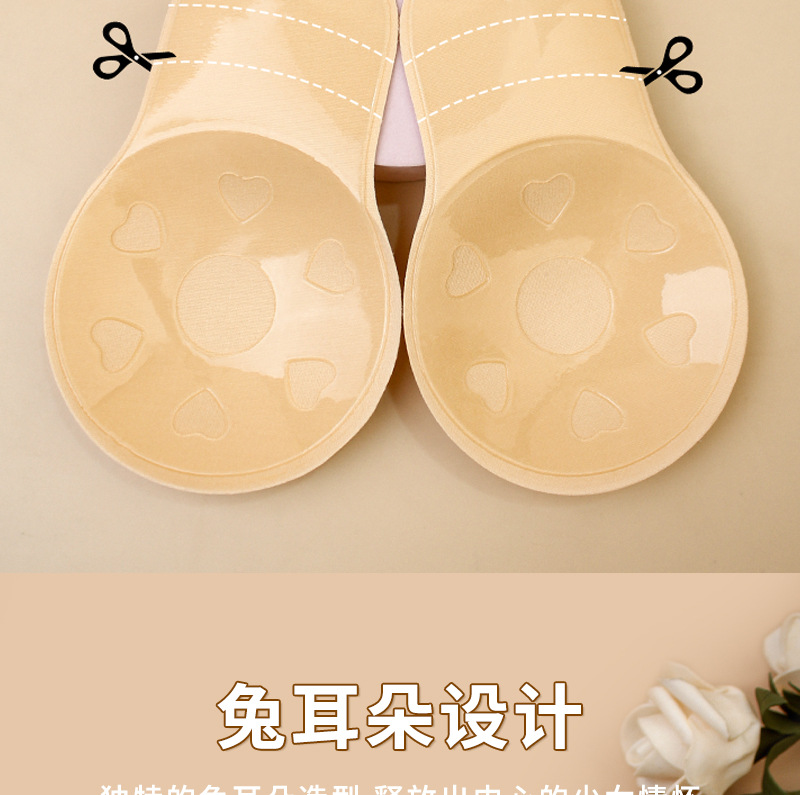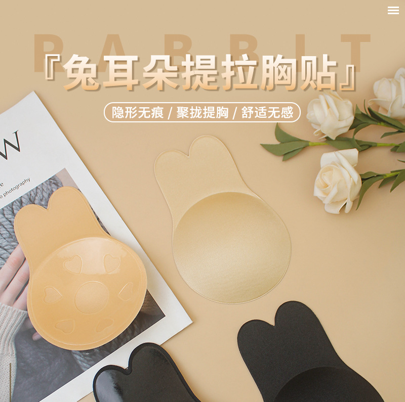 Fábrica al por mayor de orejas de conejo pegatinas de levantamiento de pecho pegatinas de levantamiento de senos pegatinas anti-exposición sujetador invisible soporte superior sujetador de silicona transfronterizo