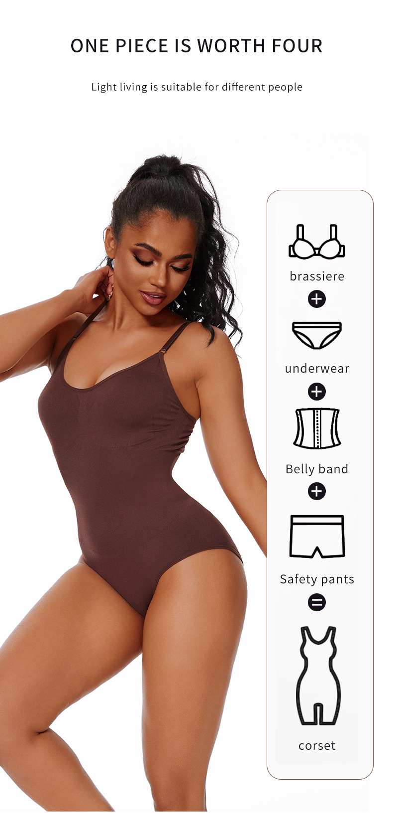 Bodysuit moldeador de una pieza para mujer estilo europeo/americano - Levantamiento de glúteos, abertura, tirantes, soporte de pecho, bragas transfronterizas