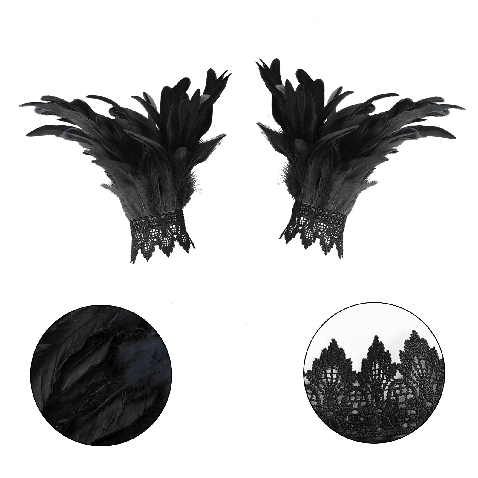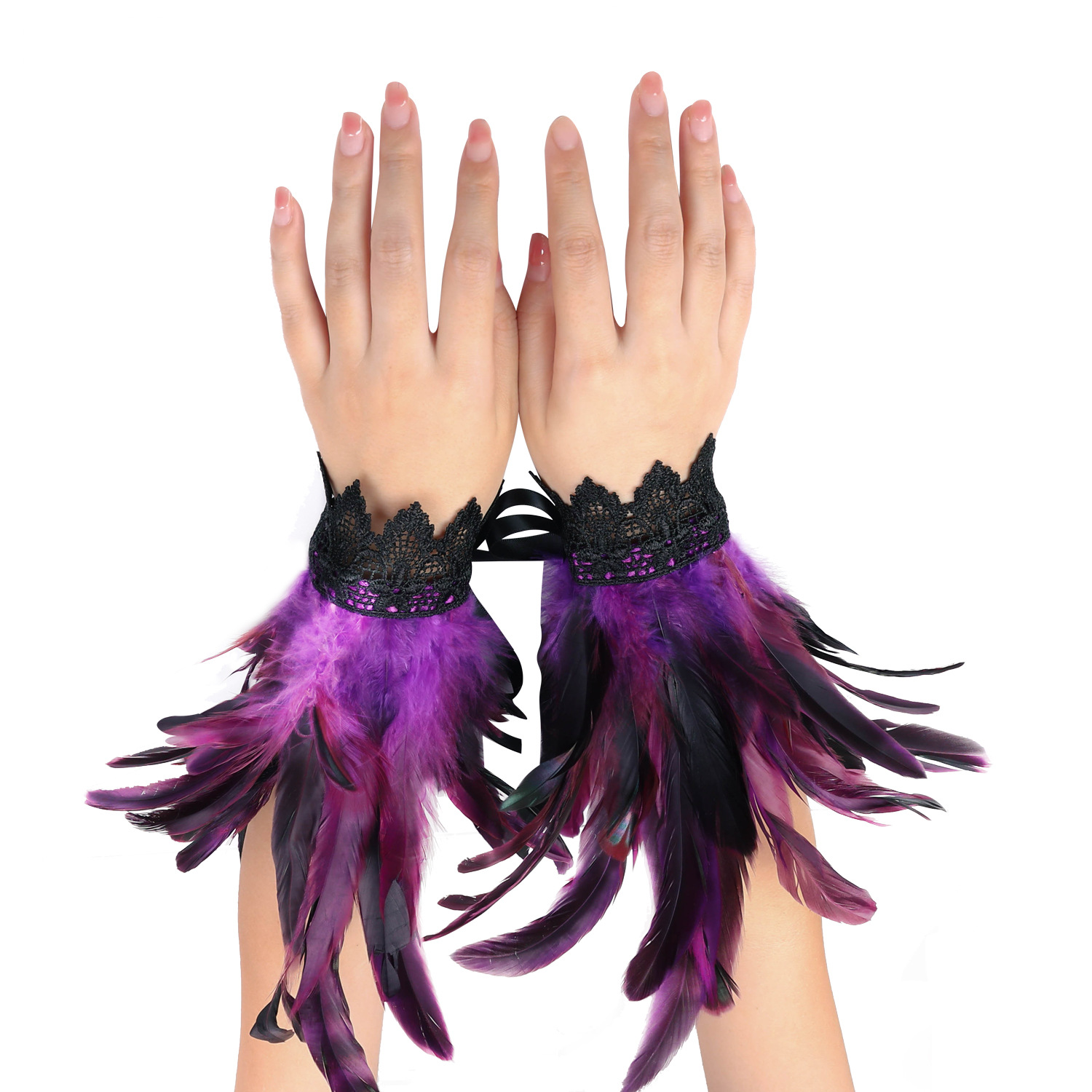 En stock Amazon pluma pulsera Festival rendimiento bola encaje pluma pulsera estilo gótico pluma mano