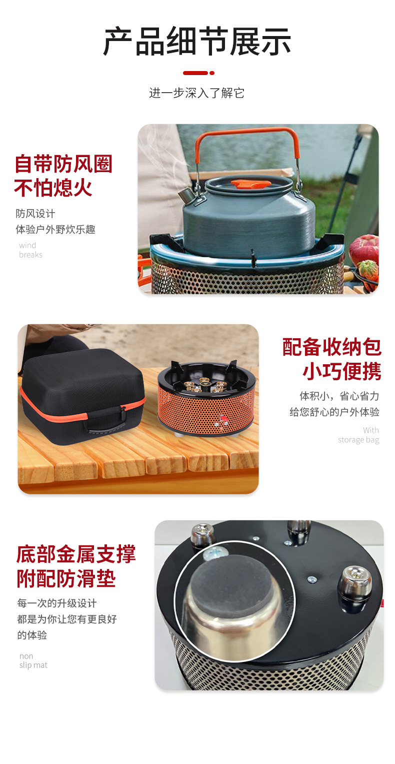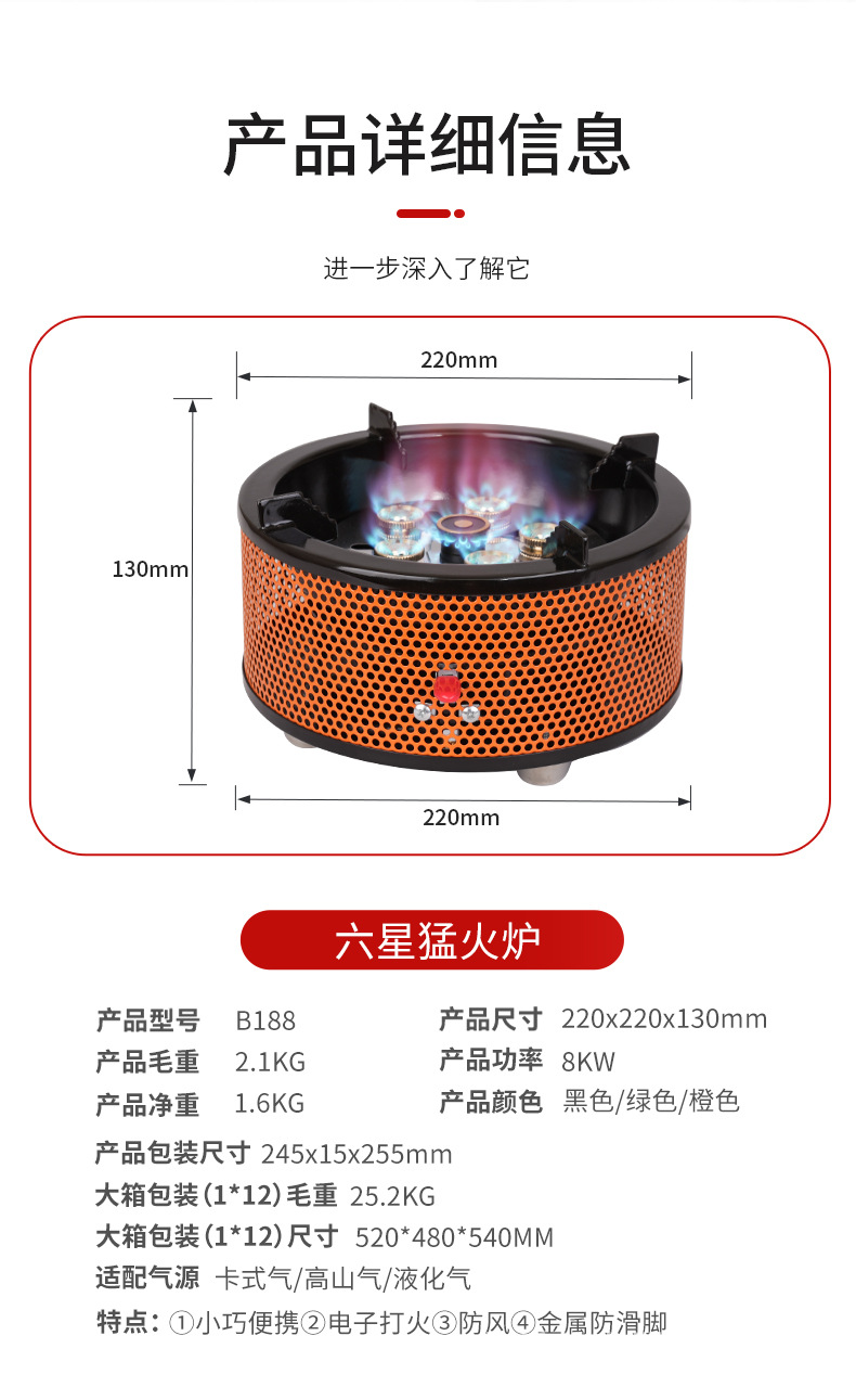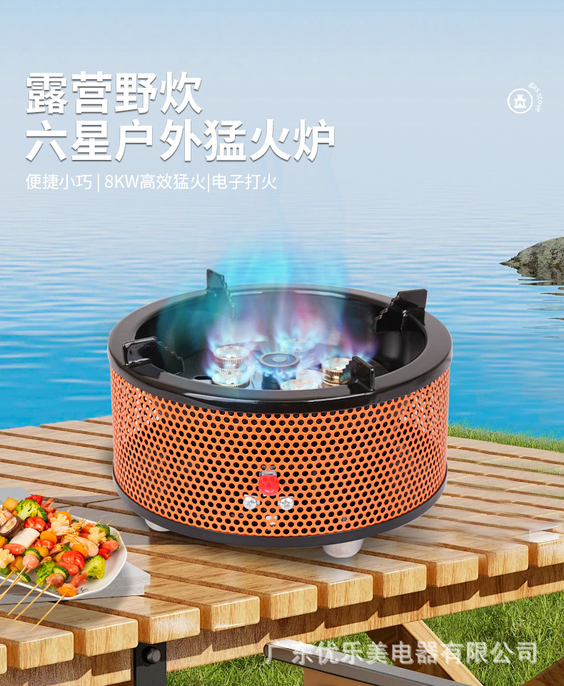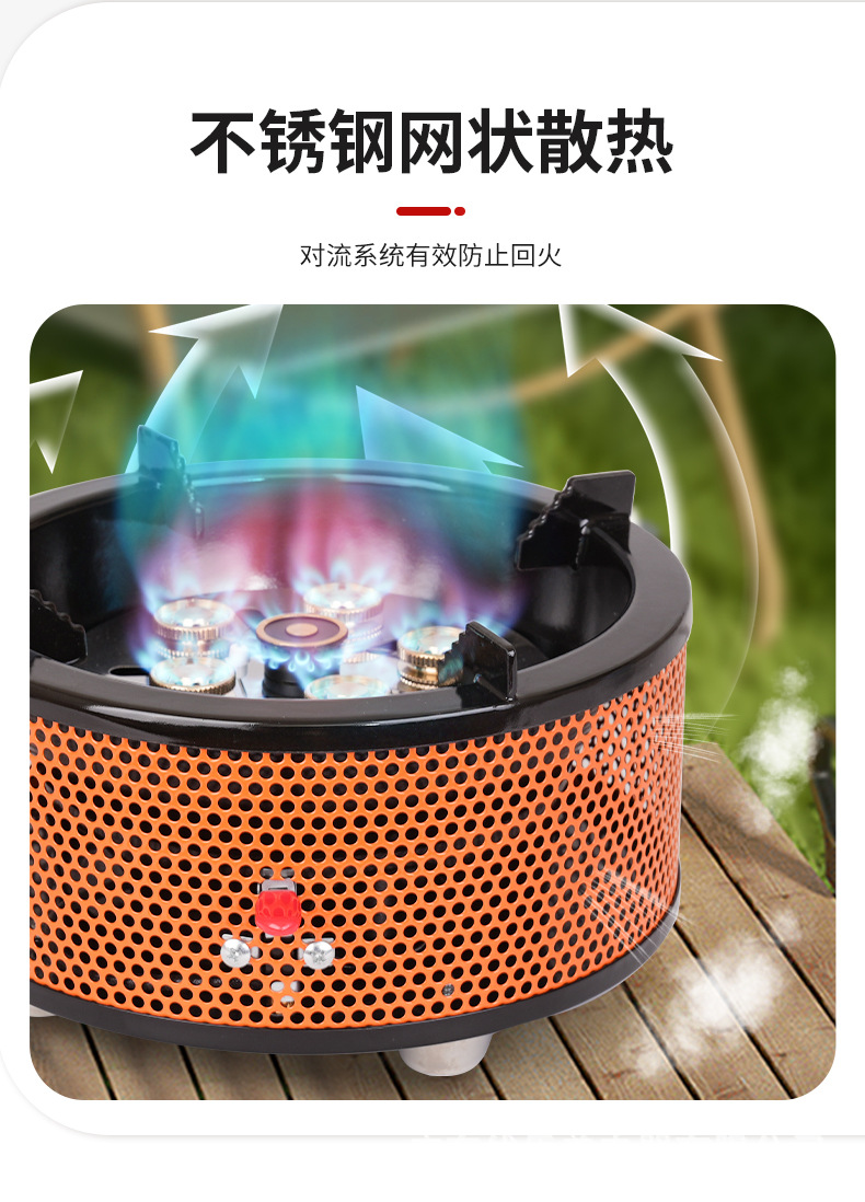 Estufa de seis estrellas al aire libre para acampar, portátil, ahorro de energía, a prueba de viento, tipo de tarjeta de alta potencia, gas de alta montaña, estufa de gas