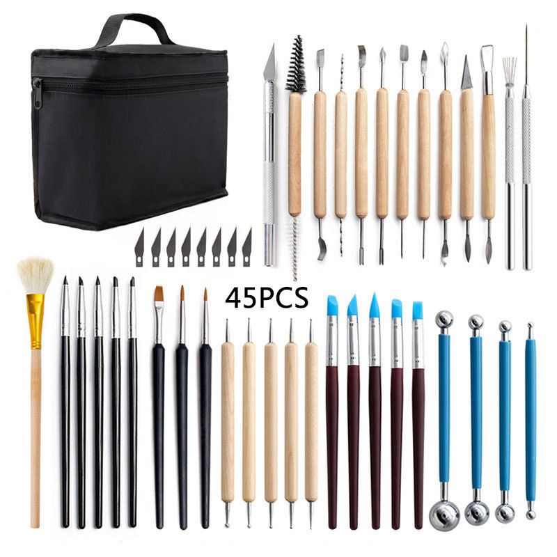 Herramientas de cerámica 61 unidades traje arcilla modelado auxiliar cuchillo silicona punto taladro pluma almacenamiento embalaje arcilla trabajador