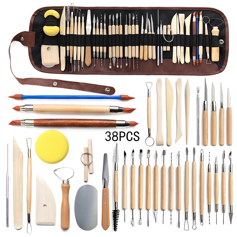 Herramientas de cerámica transfronteriza 24 piezas traje arcilla escultura cuchillo arcilla esponja bola palo de silicona DIY taladro pluma