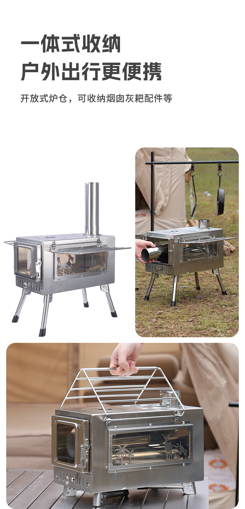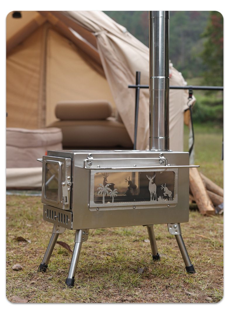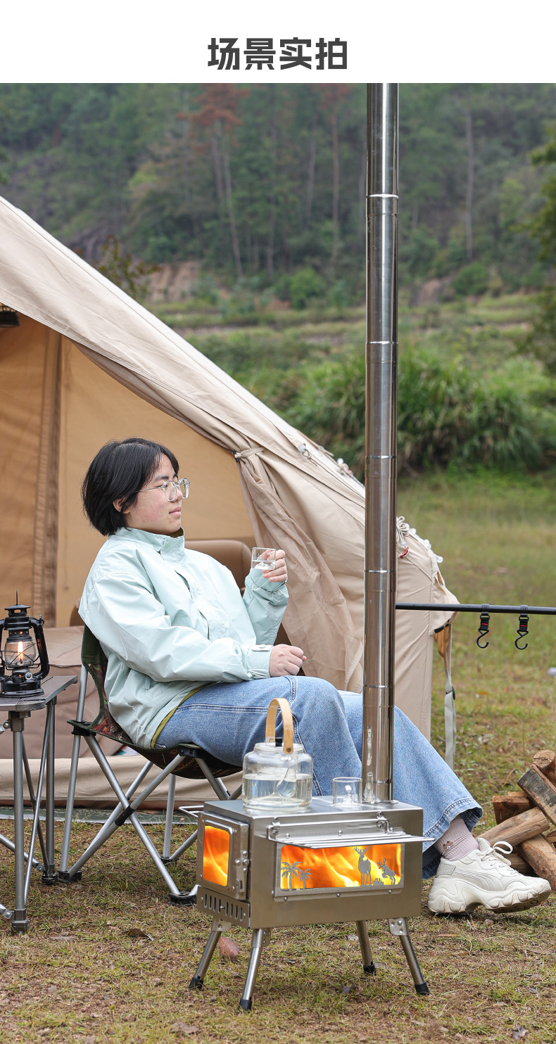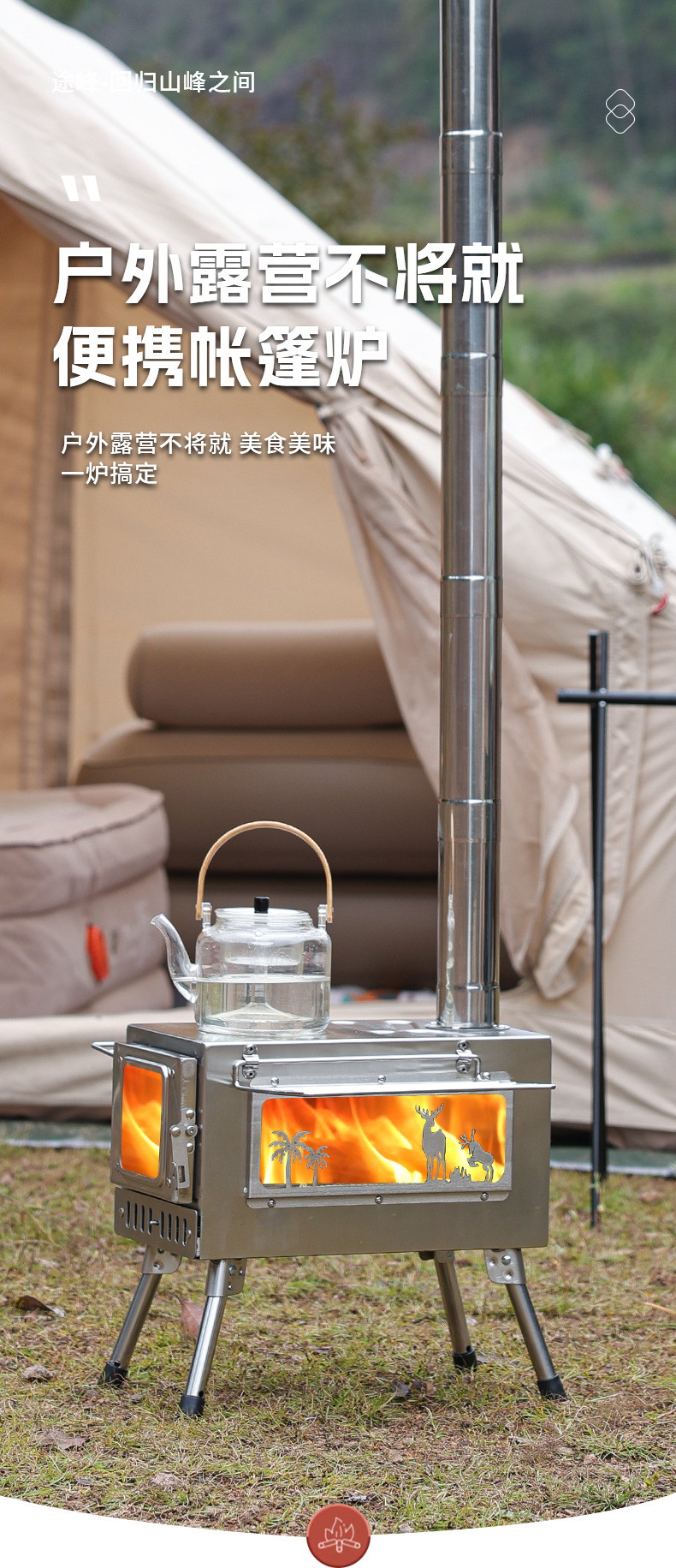 Estufa de leña portátil plegable de acero inoxidable para acampar, calentamiento de tiendas de campaña, estufa para exteriores, venta al por mayor.