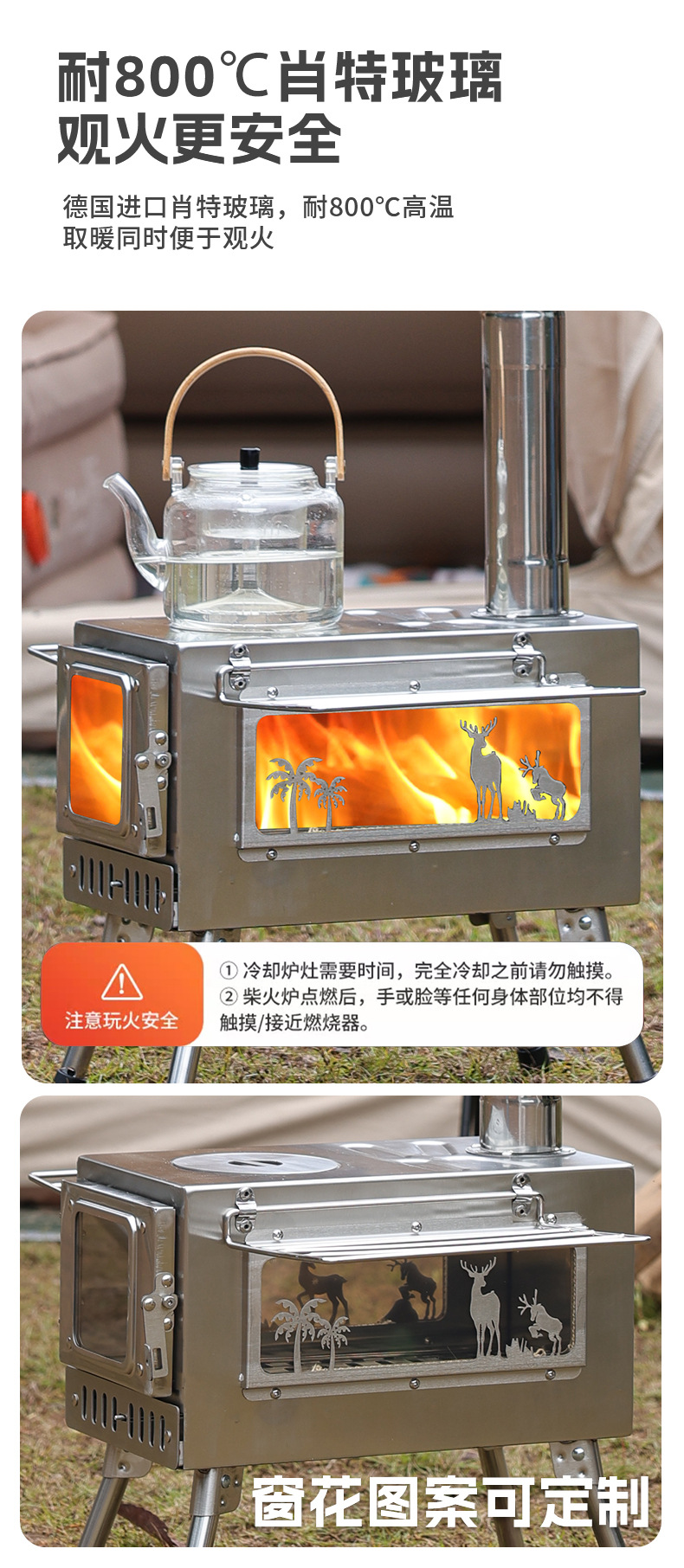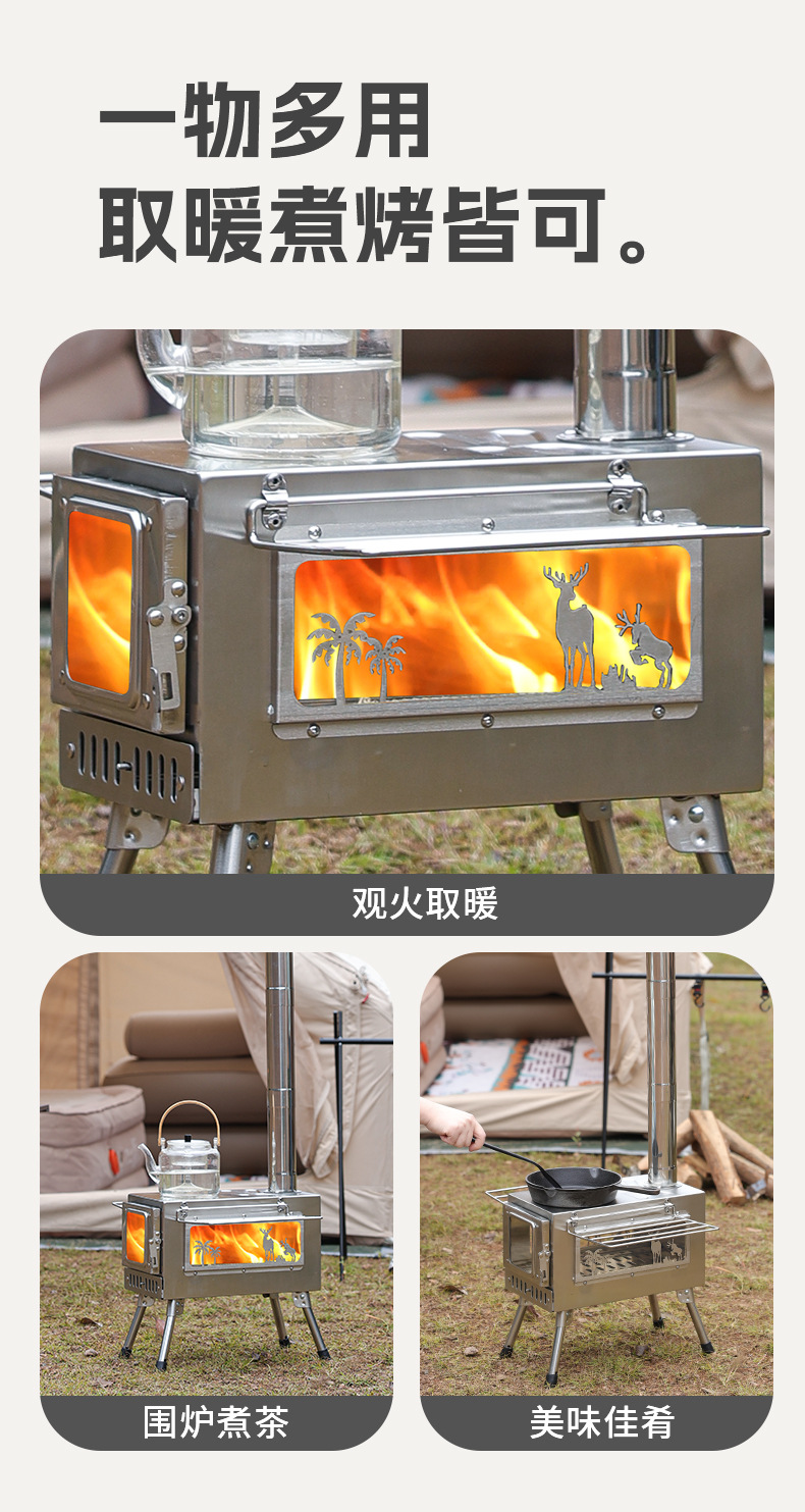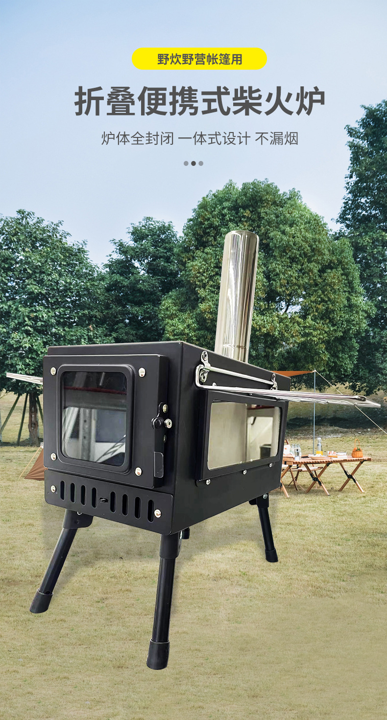 Estufa de leña portátil plegable de acero inoxidable para acampar, calentamiento de tiendas de campaña, estufa para exteriores, venta al por mayor.