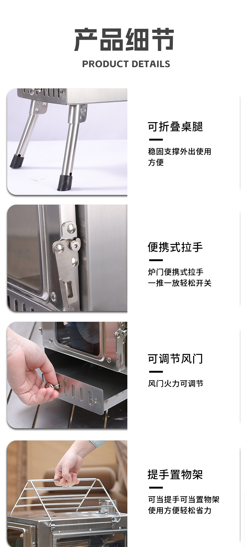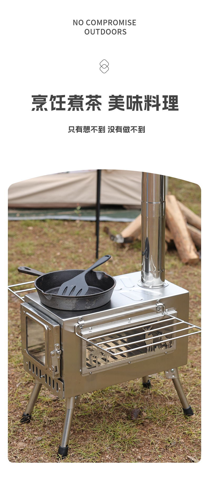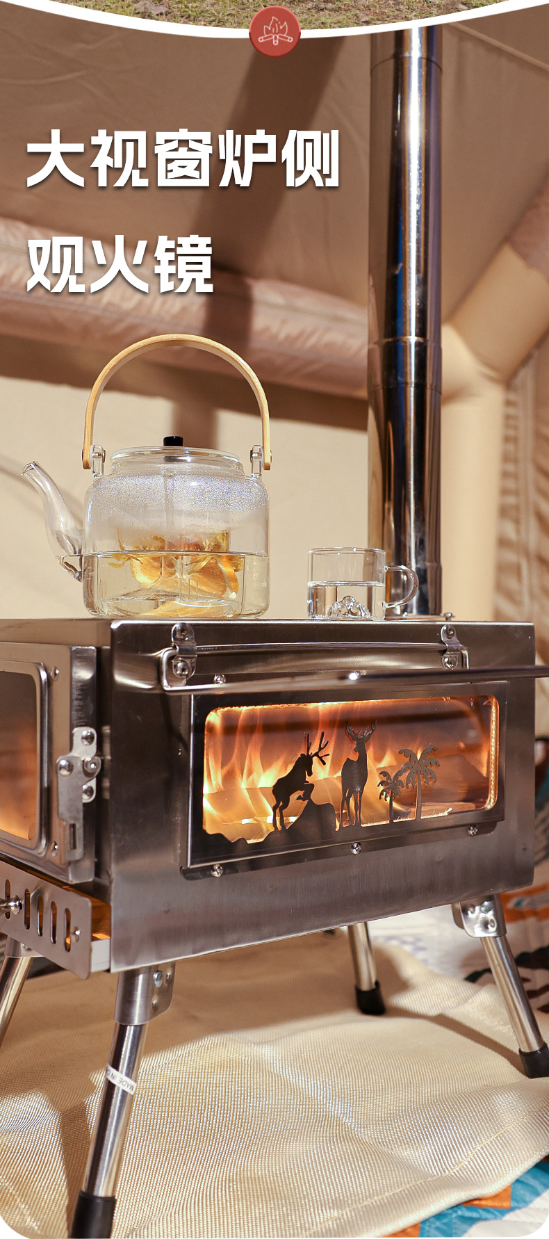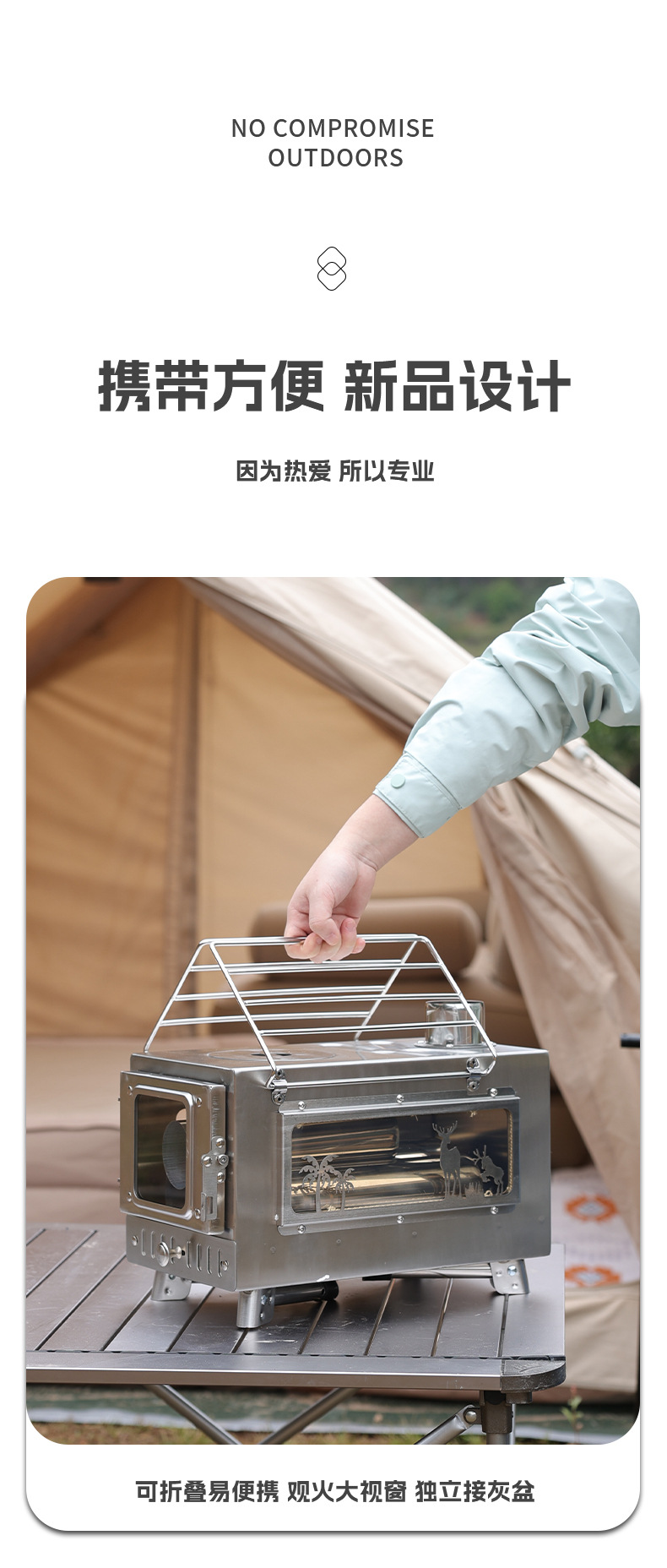 Estufa de leña portátil plegable de acero inoxidable para acampar, calentamiento de tiendas de campaña, estufa para exteriores, venta al por mayor.