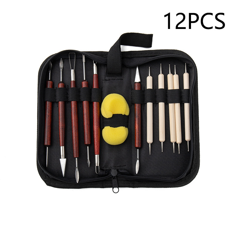 Herramientas de cerámica transfronterizas 12 unidades traje escultura de arcilla cuchillo de talla raspador combinación Paquete de rollo de arcilla suave herramientas auxiliares