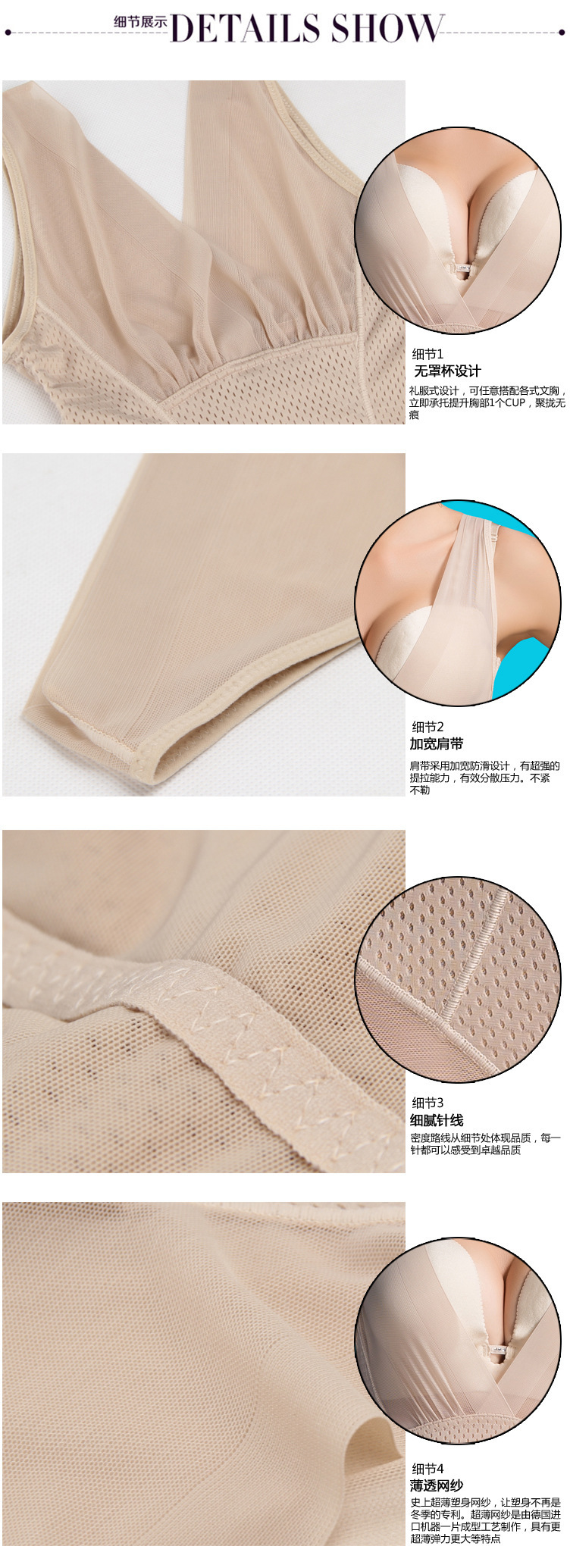 Inconsútil delgada transpirable agujero triángulo hebilla cuerpo que forma el mono Levantamiento de cuerpo que forma la ropa postparto vientre que forma la ropa