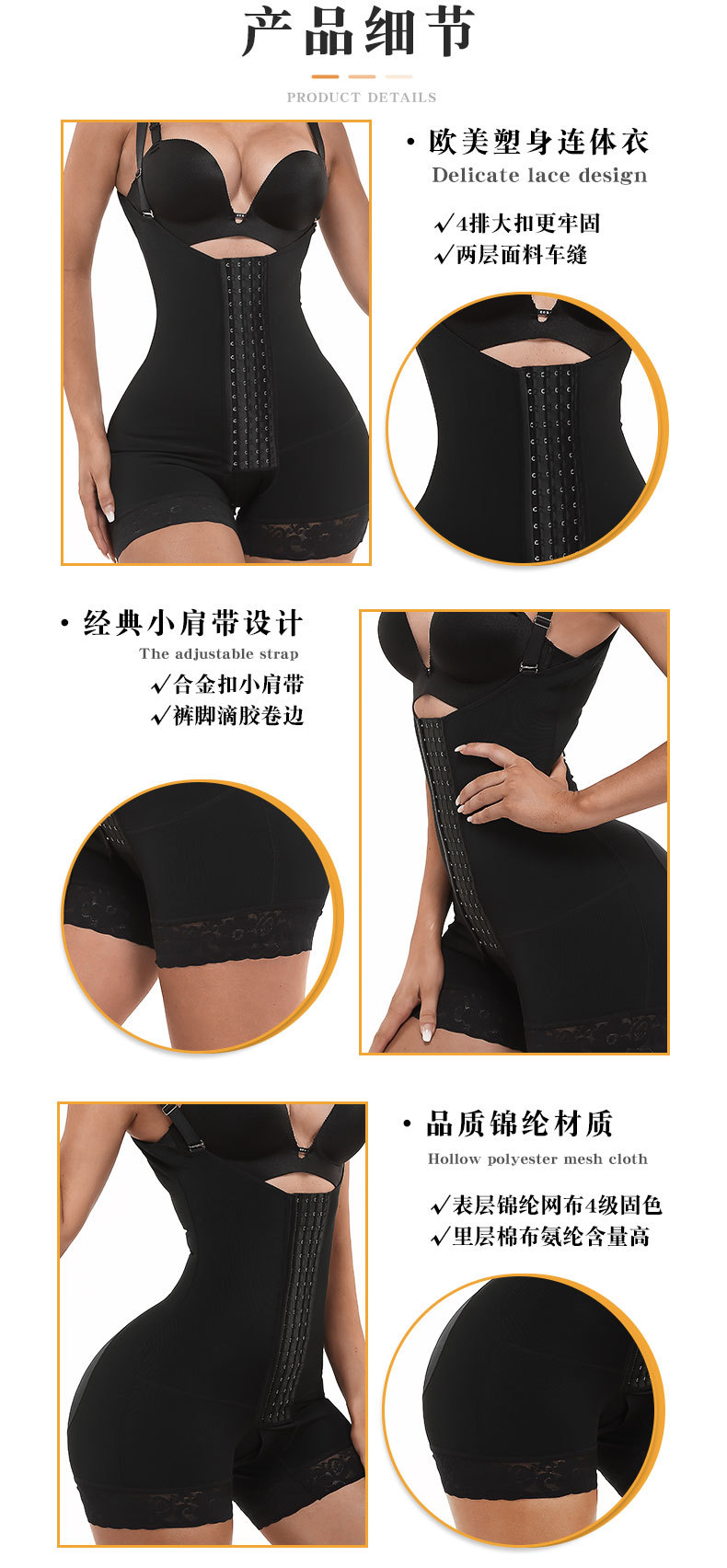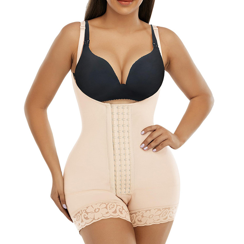 Traje de adelgazamiento de cintura de corsé de malla de cuatro pechos transfronterizos europeos y americanos más tamaño de levantamiento de cadera que forma corsé de una pieza