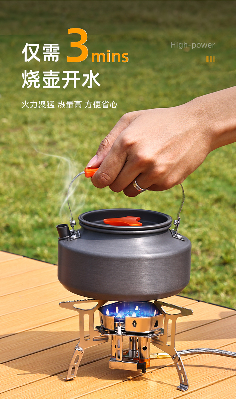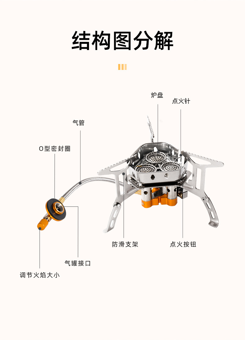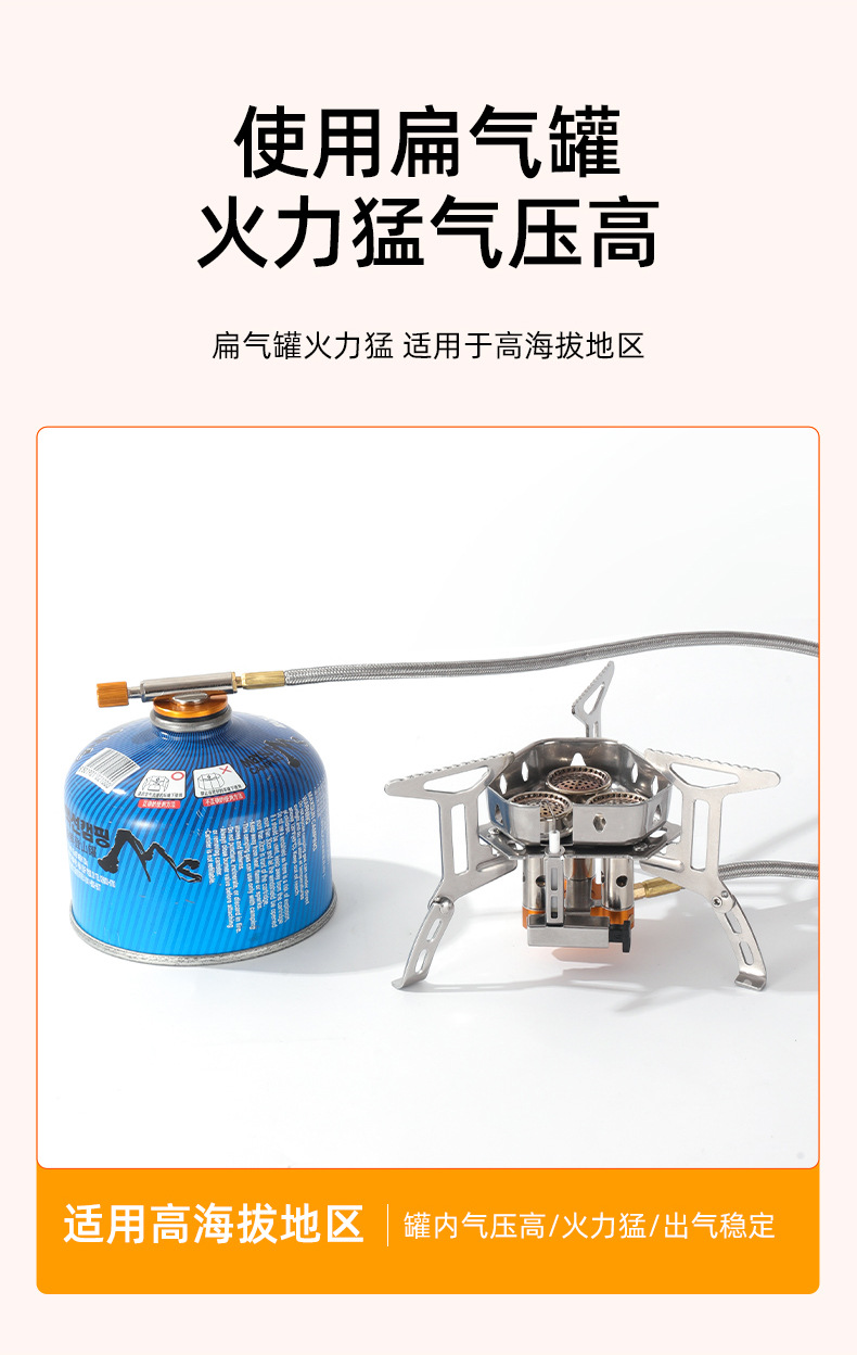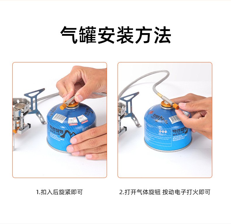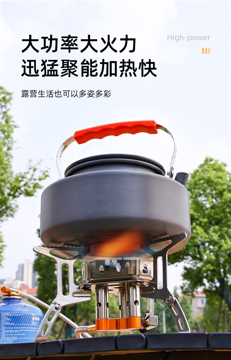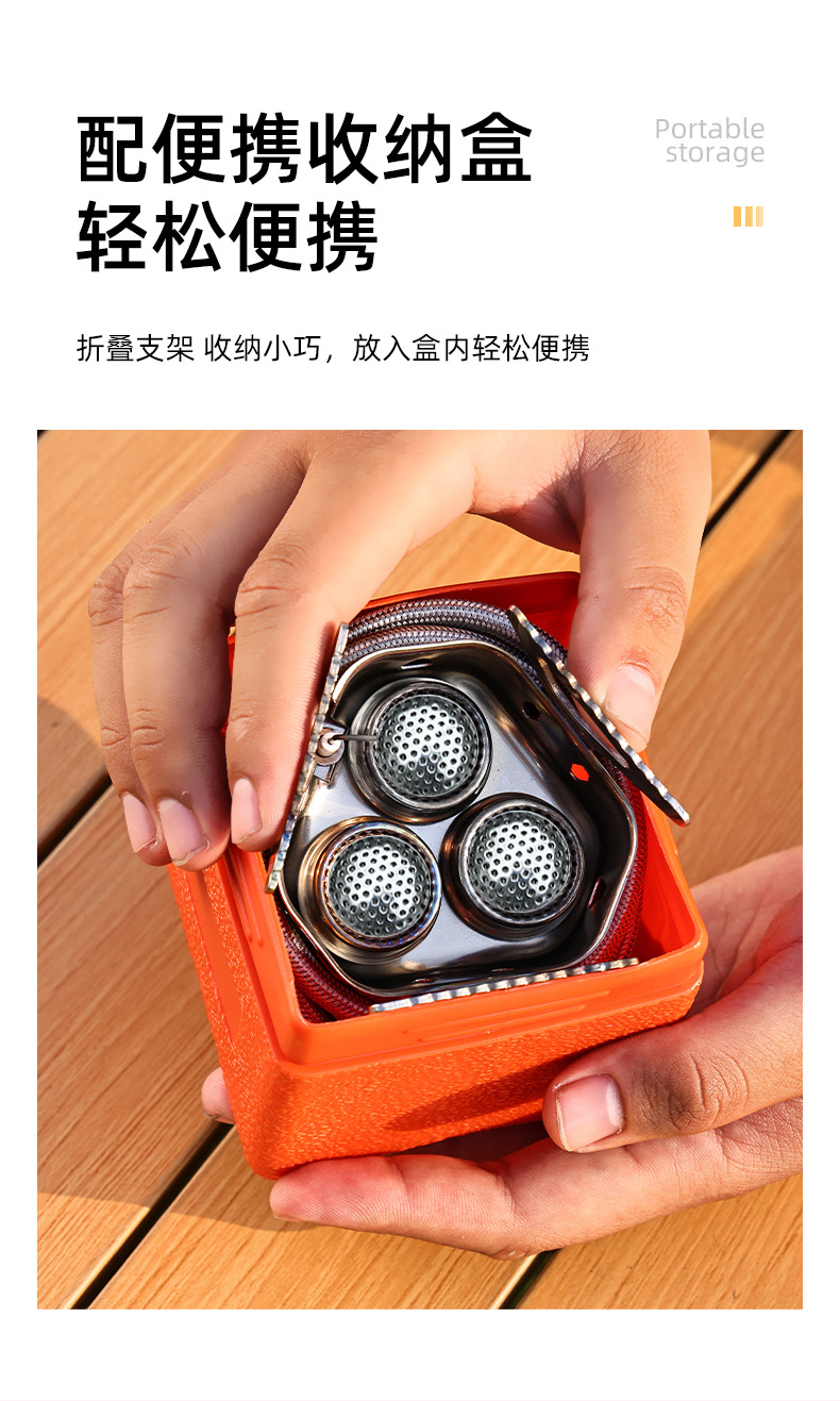 Entrega de una pieza de comercio exterior al aire libre portátil plegable tarjeta estufa de gas camping de tres cabezas estufa a prueba de viento