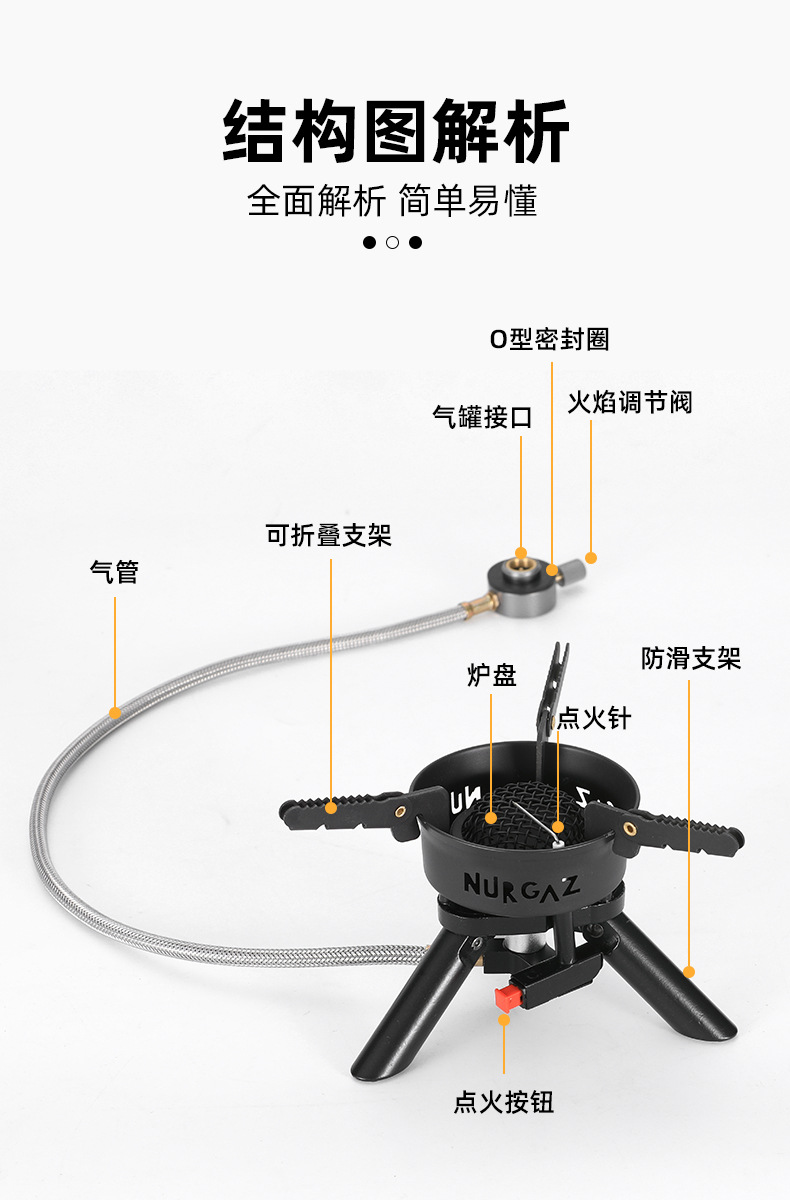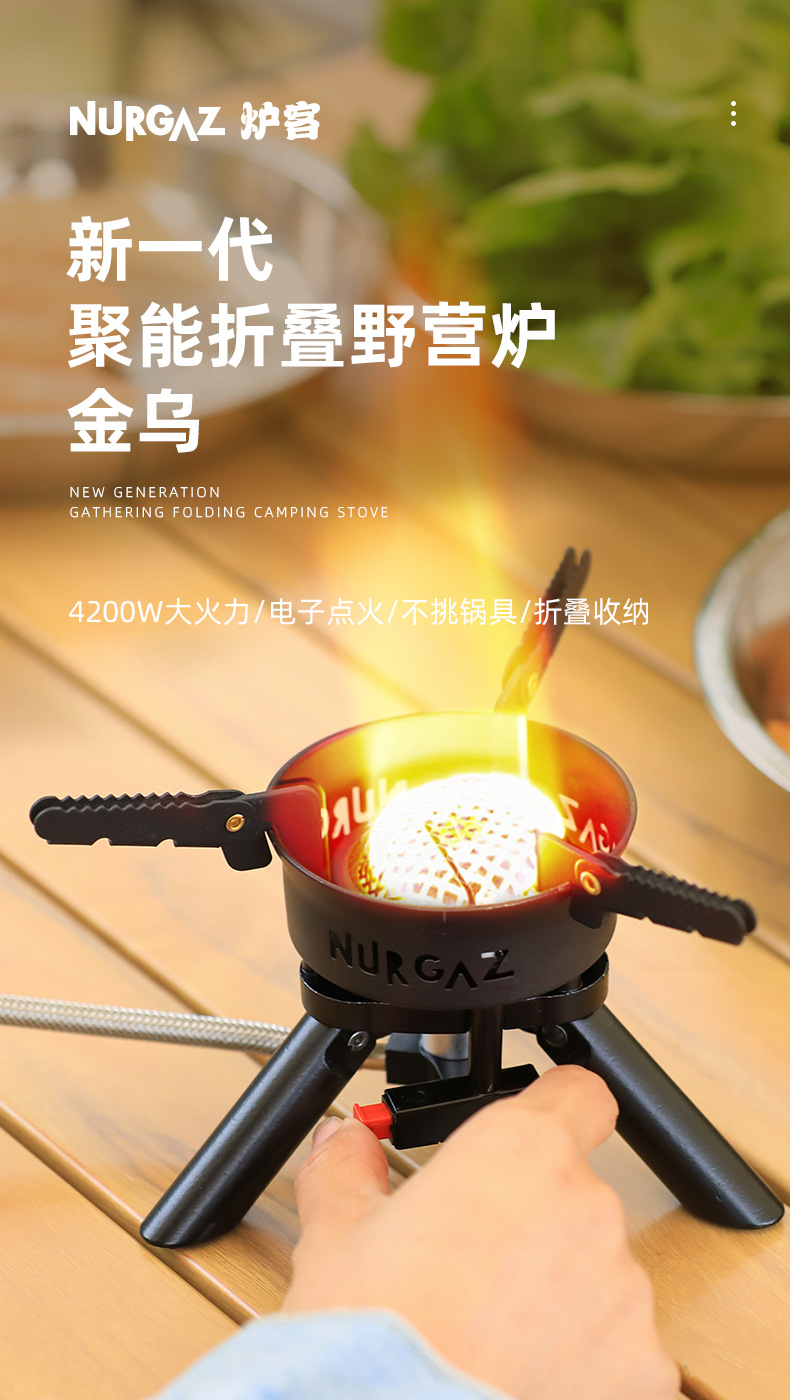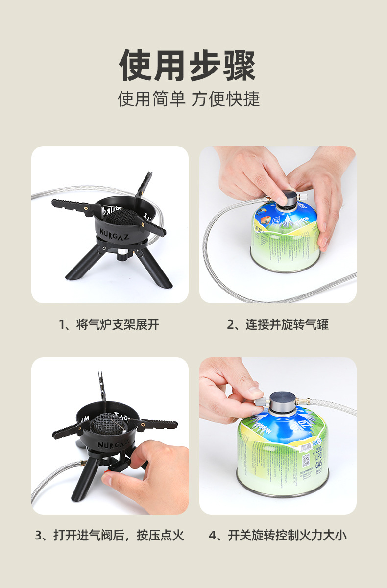Nurgaz camping estufa dividida estufa plegable con encendido electrónico estufa de gas portátil feroz estufa a prueba de viento