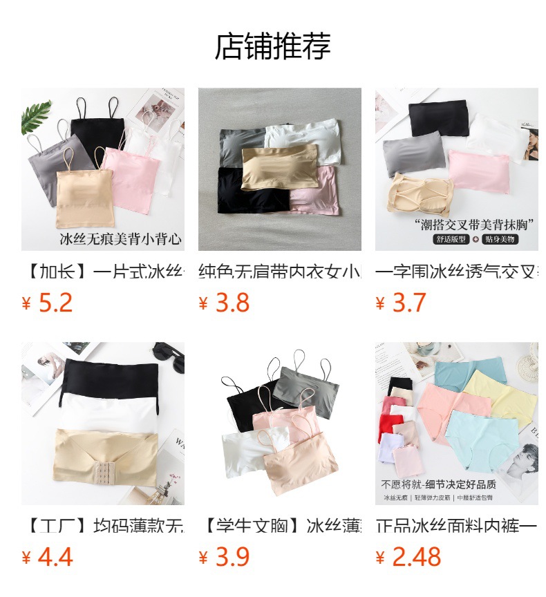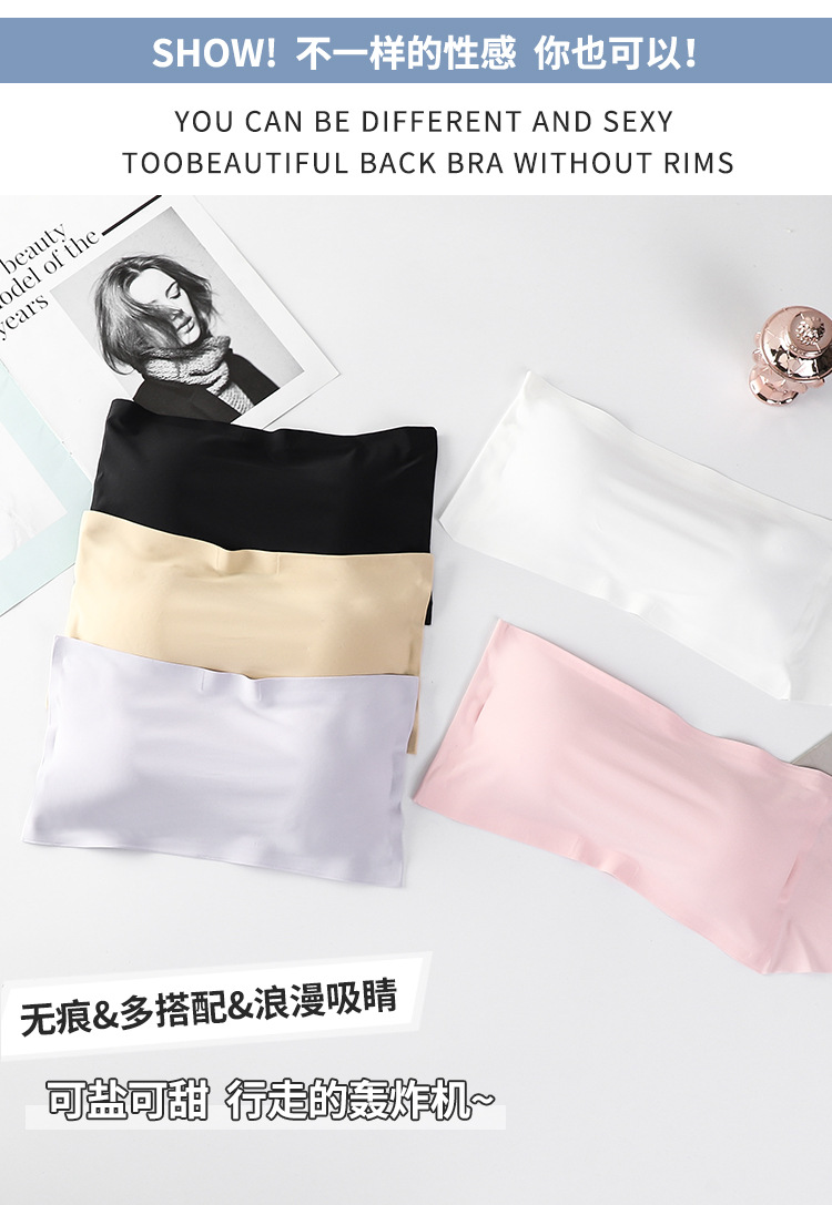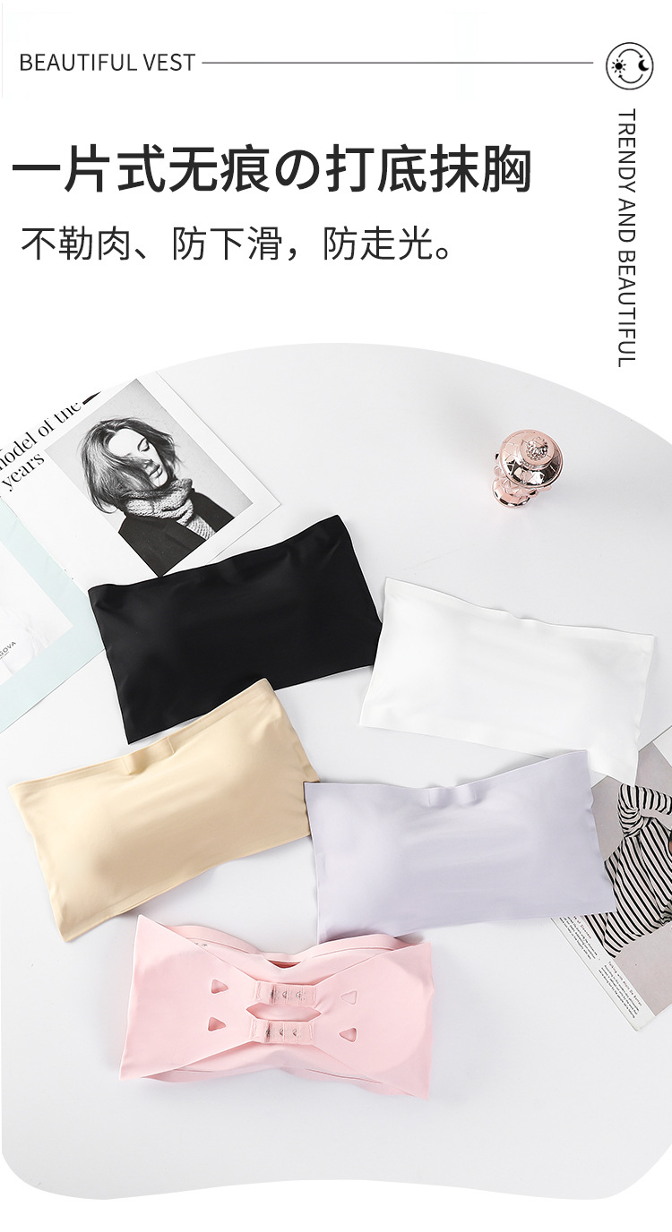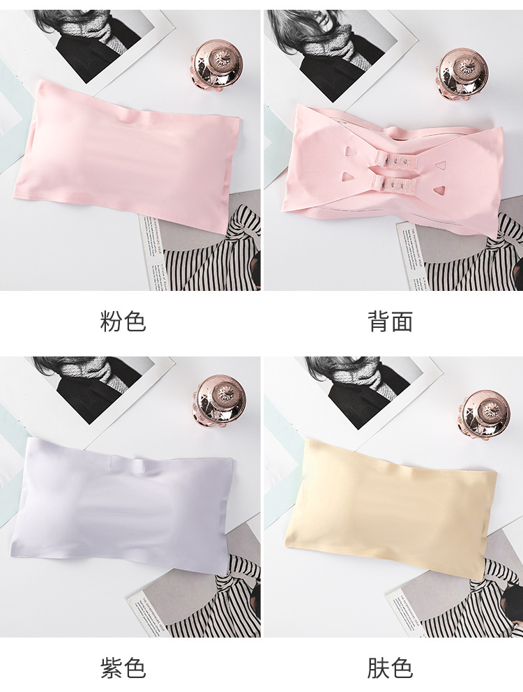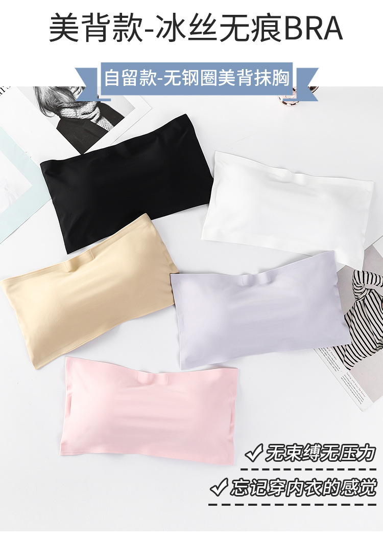 Verano de seda de hielo sin costuras correa de hombro de una palabra belleza ropa interior de espalda cofre pequeño anti-exposición envuelto pecho ropa interior de niña con almohadilla de pecho top de tubo