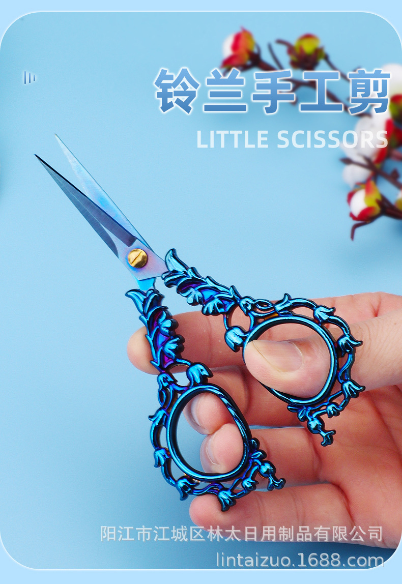 Tijeras pequeñas retro paquete de material puntiagudo de aleación de zinc hecho a mano tijeras pequeñas ventana flor bordada tijeras de Orquídea estudiante
