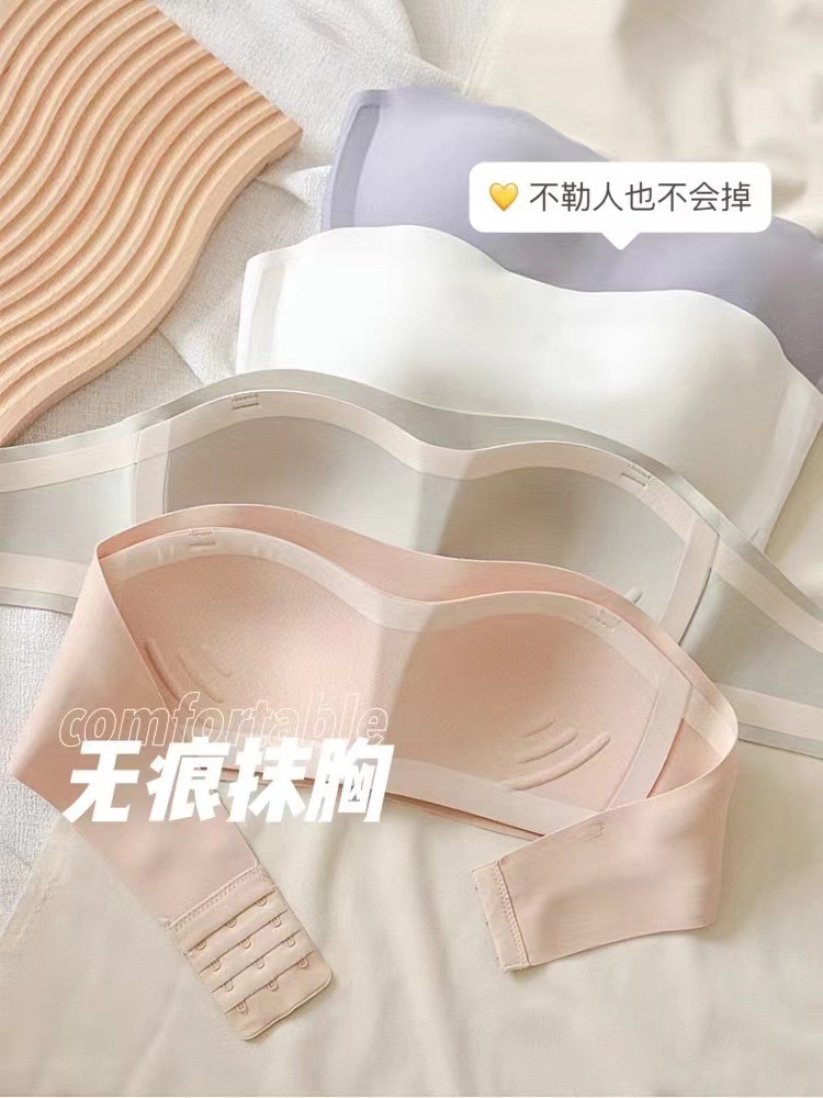 Ropa interior sin tirantes ropa exterior de las mujeres verano fino antideslizante tubo invisible sin costuras tira de jalea de pecho sujetador envuelto