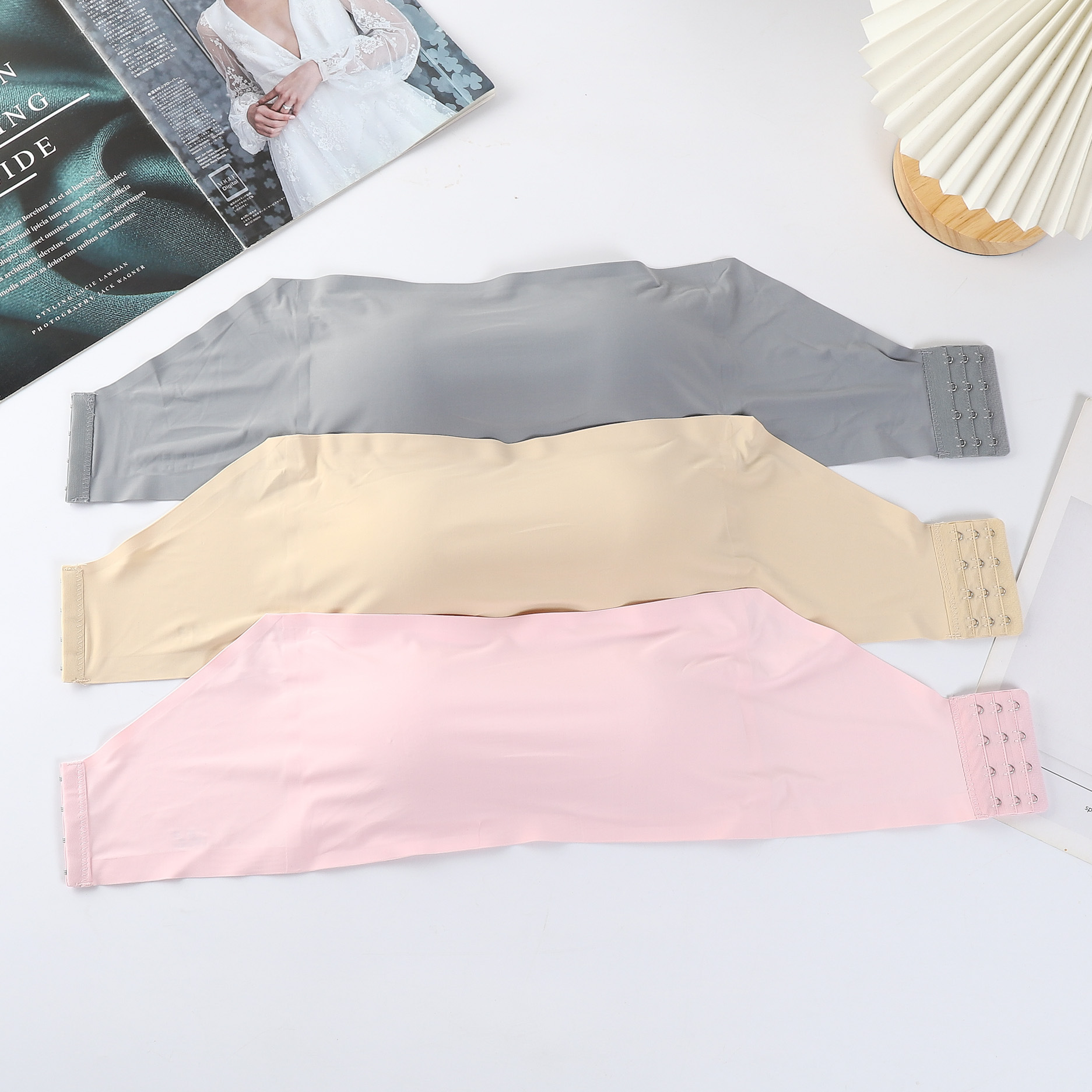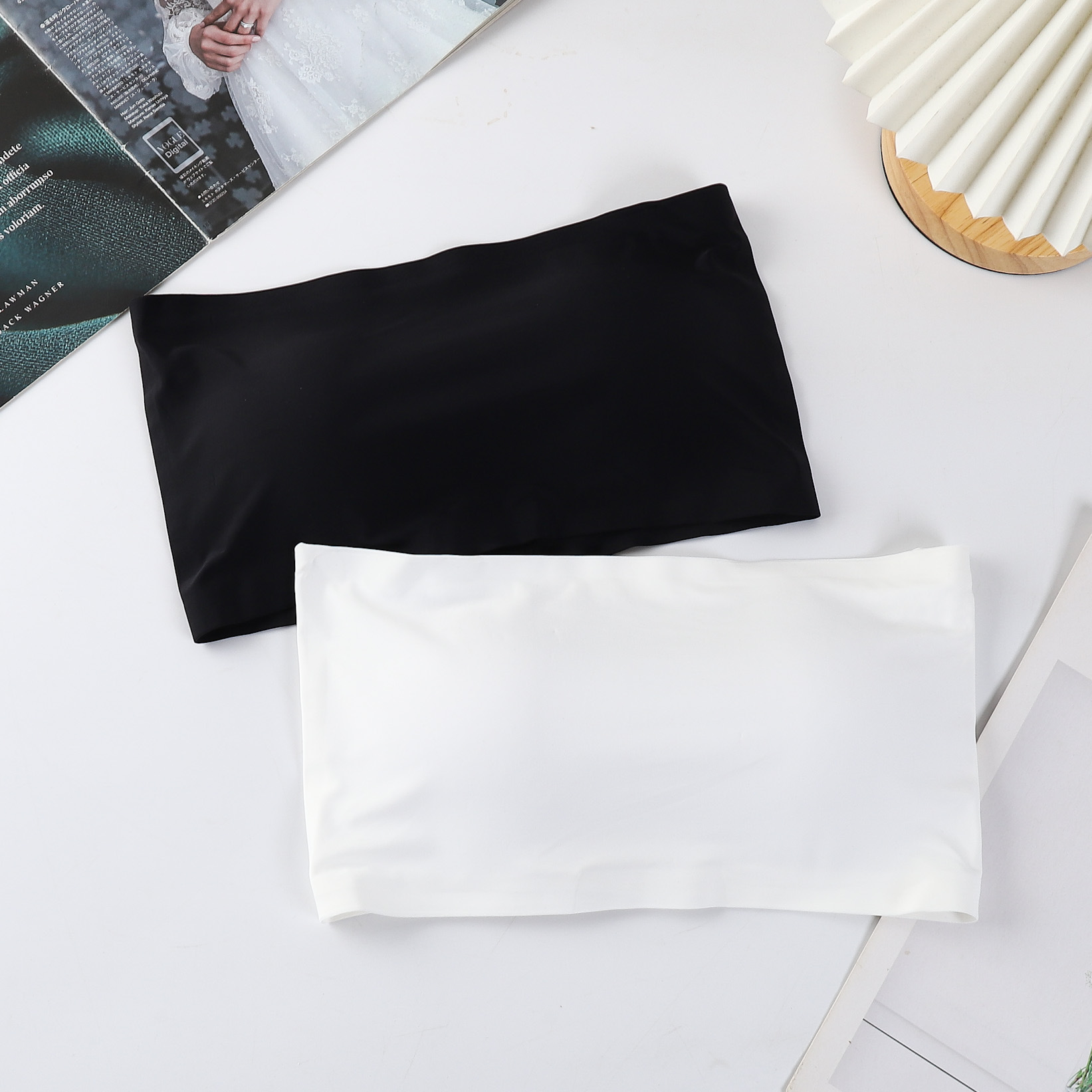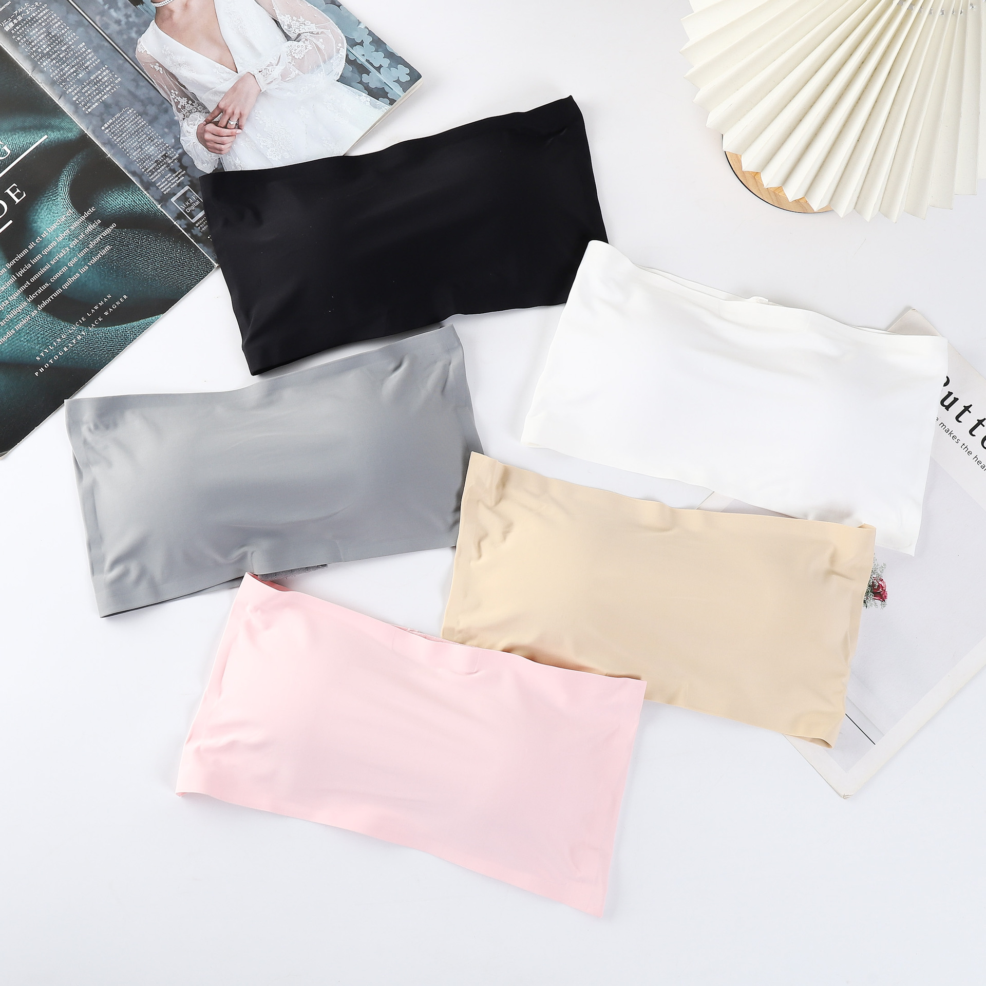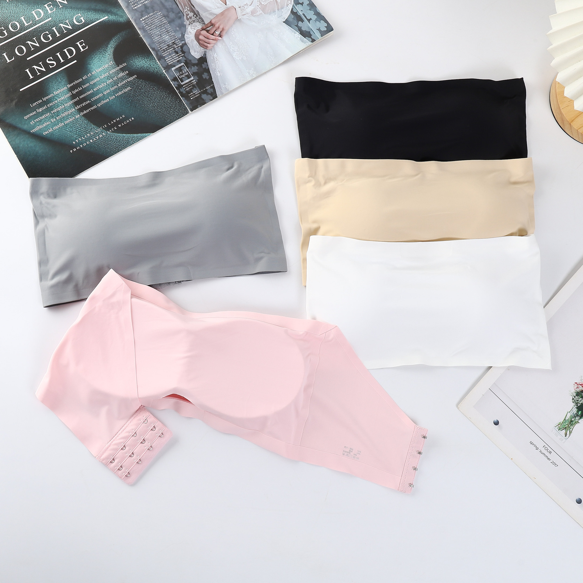 Suministro directo de fábrica de seda de hielo sin costuras de cuatro breasted sujetador sin tirantes de una palabra pecho con almohadilla de pecho anti-exposición tubo superior para las mujeres